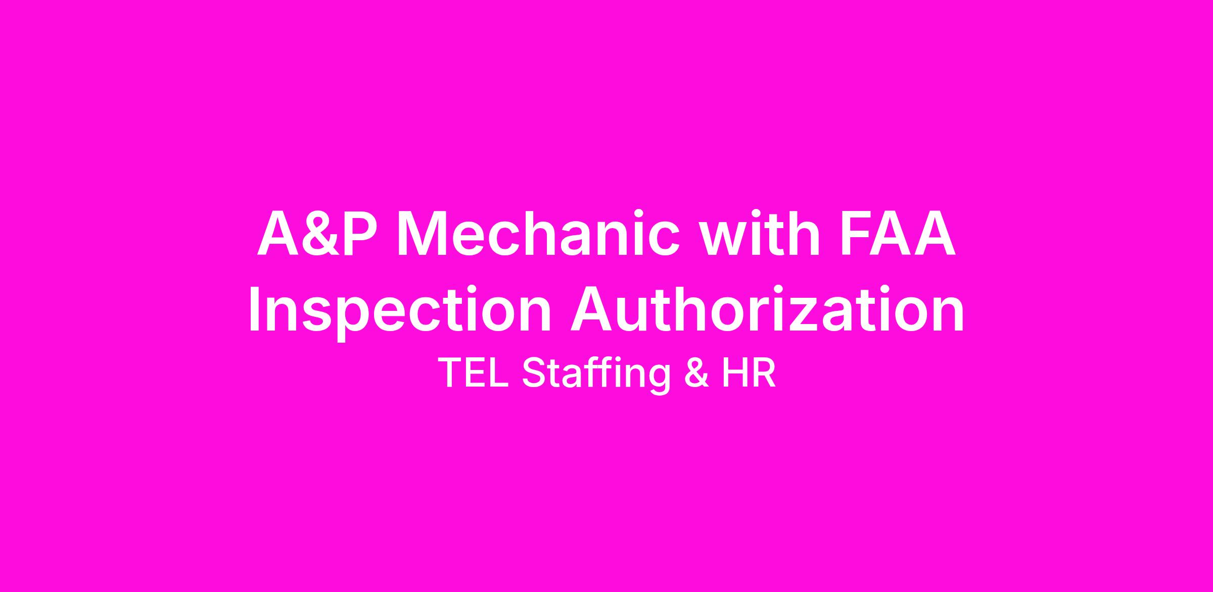 TEL Staffing is hiring an A&P Mechanic with Inspection Authorization in Gulf Shores, AL. Great opportunity with flexible scheduling, great team environment and overall awesome opportunity. Certification is REQUIRED! This Certification allows aviation mechanics to perform specific inspections on aircraft and approve them to return to service.
