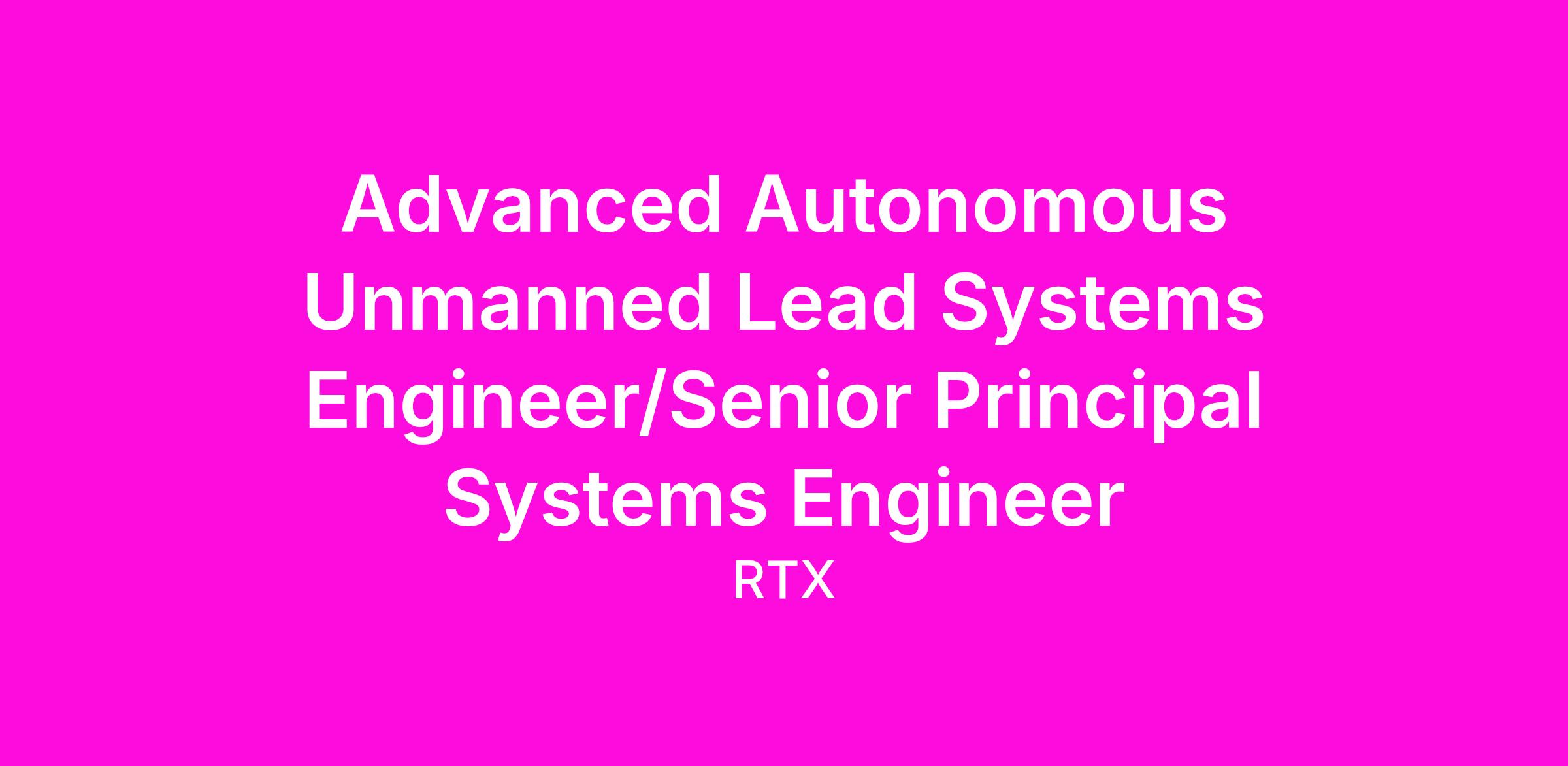 Raytheon’s Technology organization is seeking a passionate and experienced Senior Principal Systems Engineer to perform in the role of Advanced Autonomous Unmanned Lead Systems Engineer. This role will focus on the development of next-generation autonomous systems within an energetic multi-disciplinary team working collaboratively with internal and external customers to develop novel solutions for autonomous vehicle applications across multiple domains. Our team pushes the boundaries of innovation and creativity to establish next-generation mission solutions from system-level up to campaign level operations.