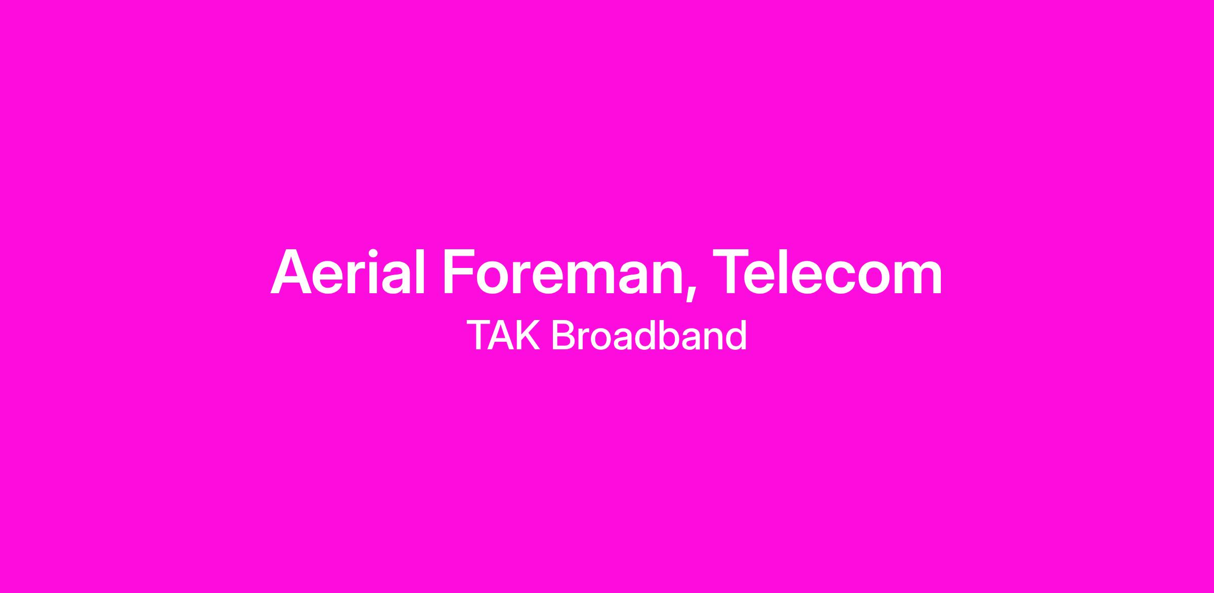 We are seeking an Aerial Foreman to join our team. This position will require travel to job sites daily plus other states which could be up to +/-75% annually depending on where you live. We currently have work in MT, AZ, IN, OK, TX, NM, and more coming. In this role you will lead the aerial crew in daily work to safely complete jobs, install and/or repair aerial cable tv (CTV) coaxial and fiber cable and provide excellent customer service.