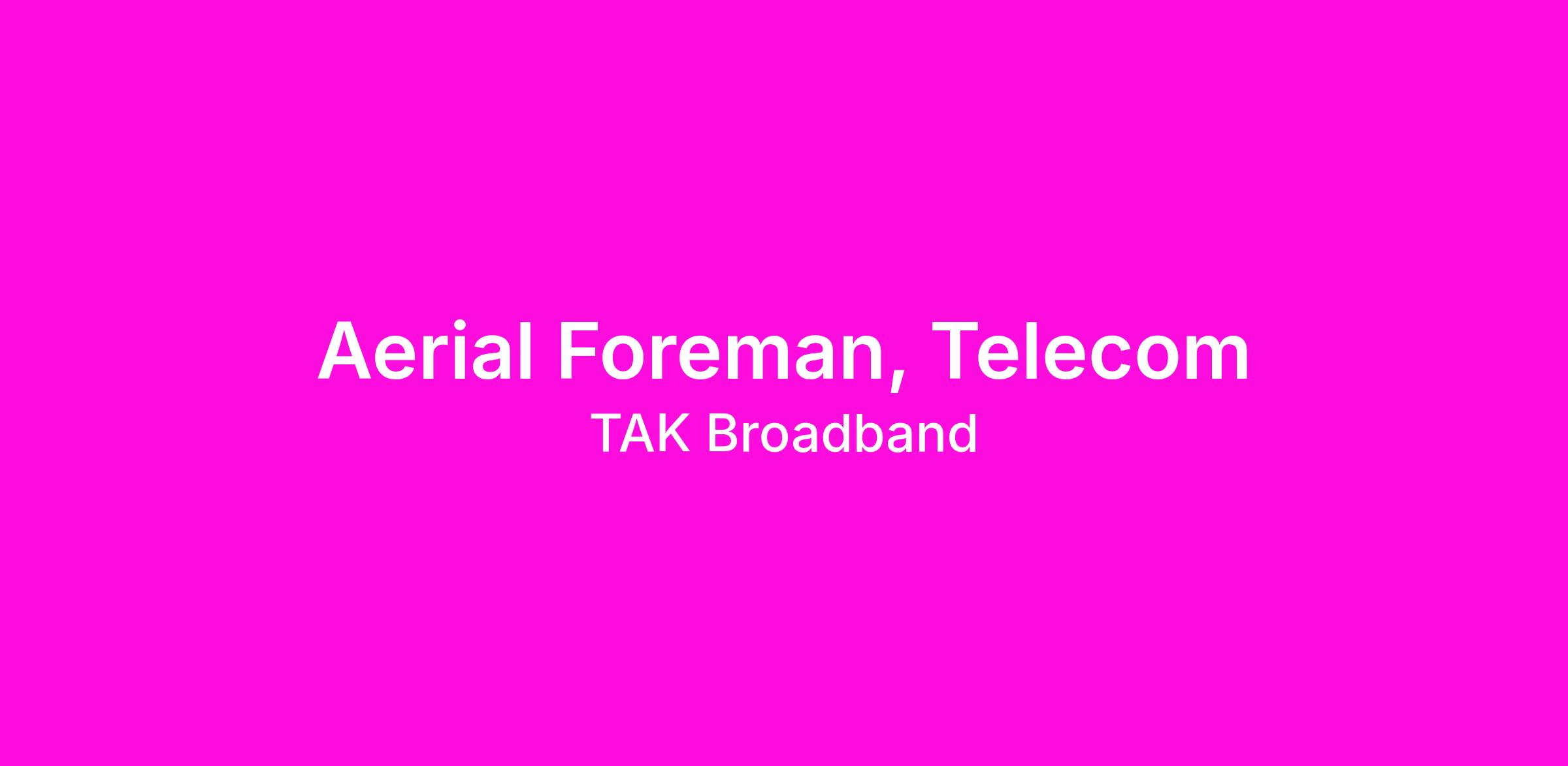 We are seeking an Aerial Foreman to join our team. This position will require travel to job sites daily plus other states which could be up to +/-75% annually depending on where you live. We currently have work in MT, AZ, IN, OK, TX, NM, and more coming. In this role you will lead the aerial crew in daily work to safely complete jobs, install and/or repair aerial cable tv (CTV) coaxial and fiber cable and provide excellent customer service.