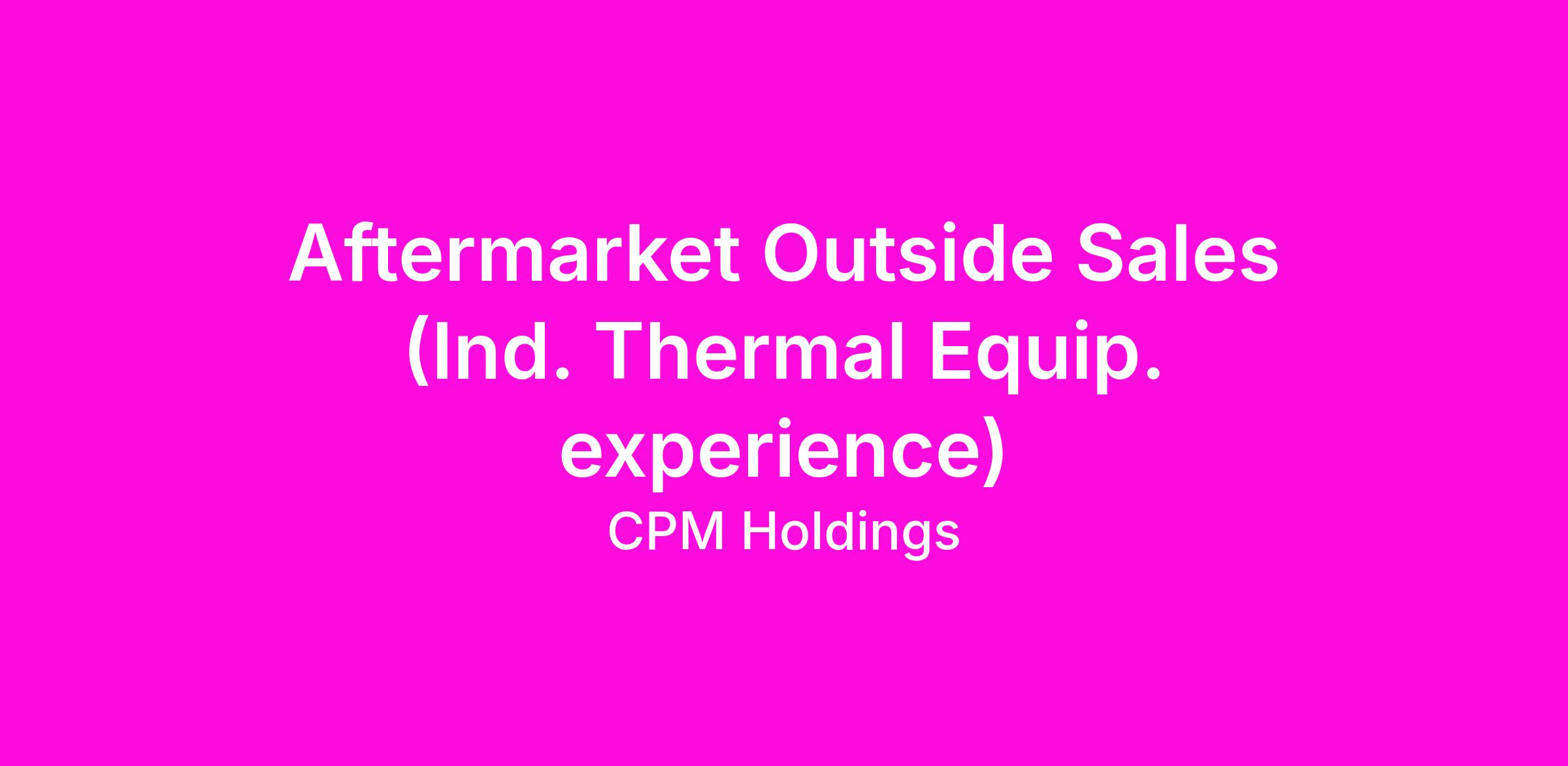 Are you a results-driven sales professional with a passion for building strong customer relationships and driving growth? CPM Holdings, Inc., a global leader in process equipment and engineered technologies, is seeking a dynamic Aftermarket Outside Sales to manage and expand our aftermarket sales for spare parts and services across North America, Mexico, Canada, and select international territories.