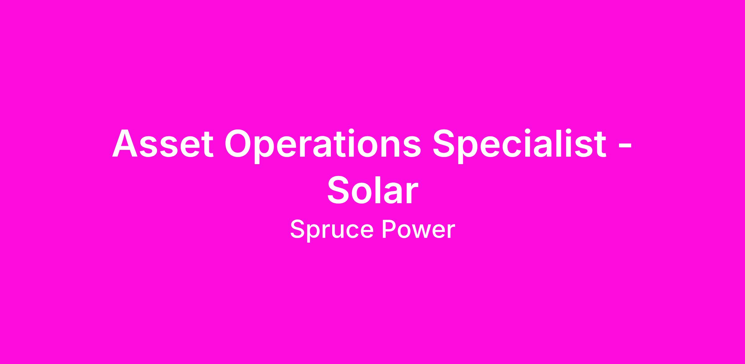 The Company : Spruce PowerSpruce Power delivers comprehensive energy servicing solutions for the solar and energy efficiency sectors. The company serves more than 70,000 customers and services more than $1 billion in assets in the United States. Spruce power offers customers a comprehensive, end-to-end servicing solution including financial asset management, account services, billing and collections, fleet management, and customer support to third-party asset owners and retail customers. Spruce Power’s servicing office is headquartered in Houston.The Role: Asset Operations SpecialistReport to the Asset Operations Manager, you will be an integral part of a dynamic, fast paced work environment. On daily basis, you will work closely with your team members and various departments both, internal and external. Your day-to-day responsibilities include, but are not limited managing work order pipeline, coordinate client and PV system issues with internal departments and external service providers, communicate with analysts to resolve any production or monitoring related issues and providing on going monitoring support.Key responsibilities include: