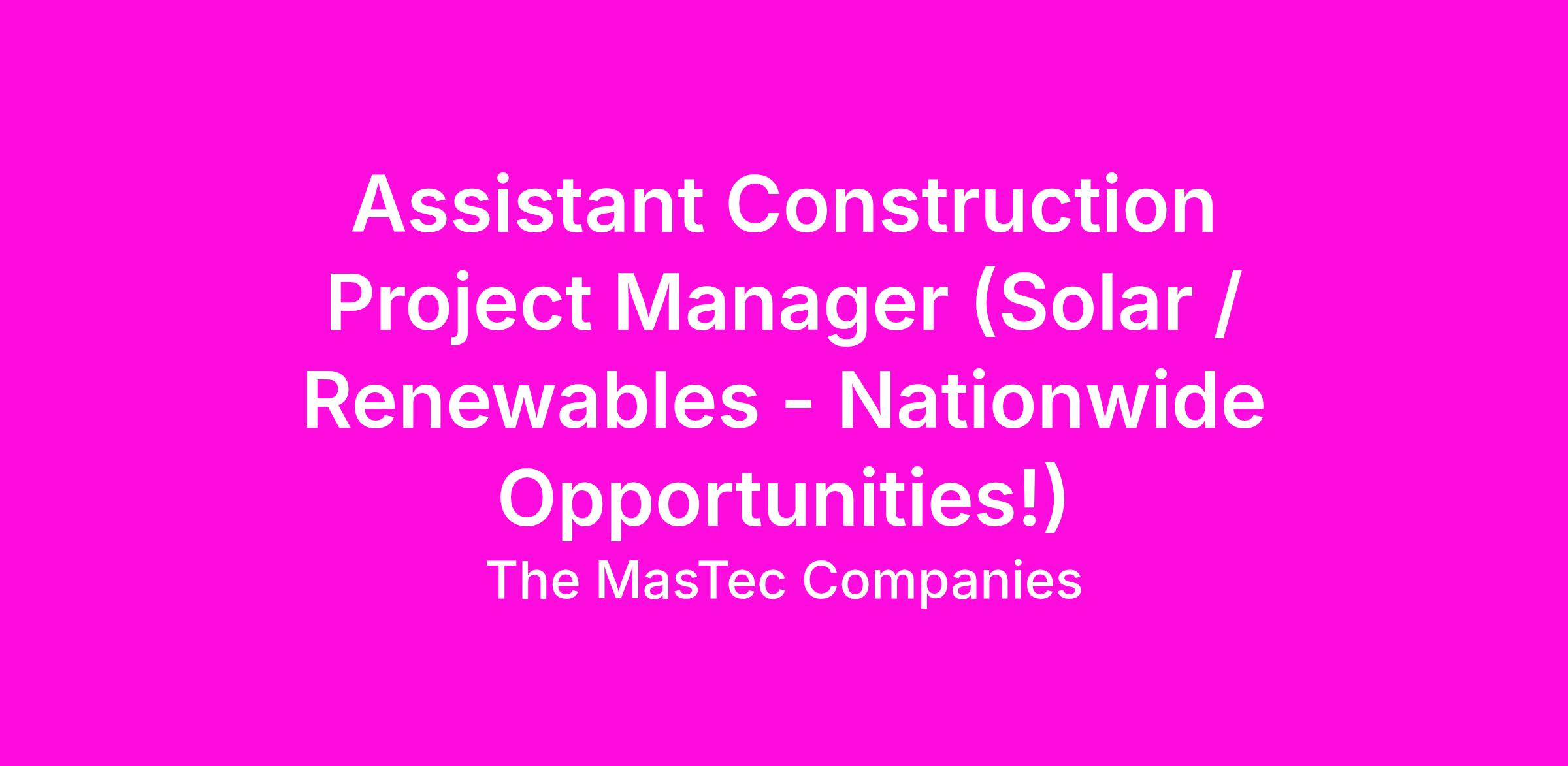 Are you ready to take the next step in your construction career and help shape the future of clean energy? We’re looking for a self-driven, resourceful, and disciplined Assistant Project Manager to support the successful delivery of utility-scale solar projects across the U.S. This is a high-impact, growth-oriented role designed to develop future project leaders. You’ll be part of a team that partners with top energy clients nationwide to build a more sustainable future—one solar project at a time.