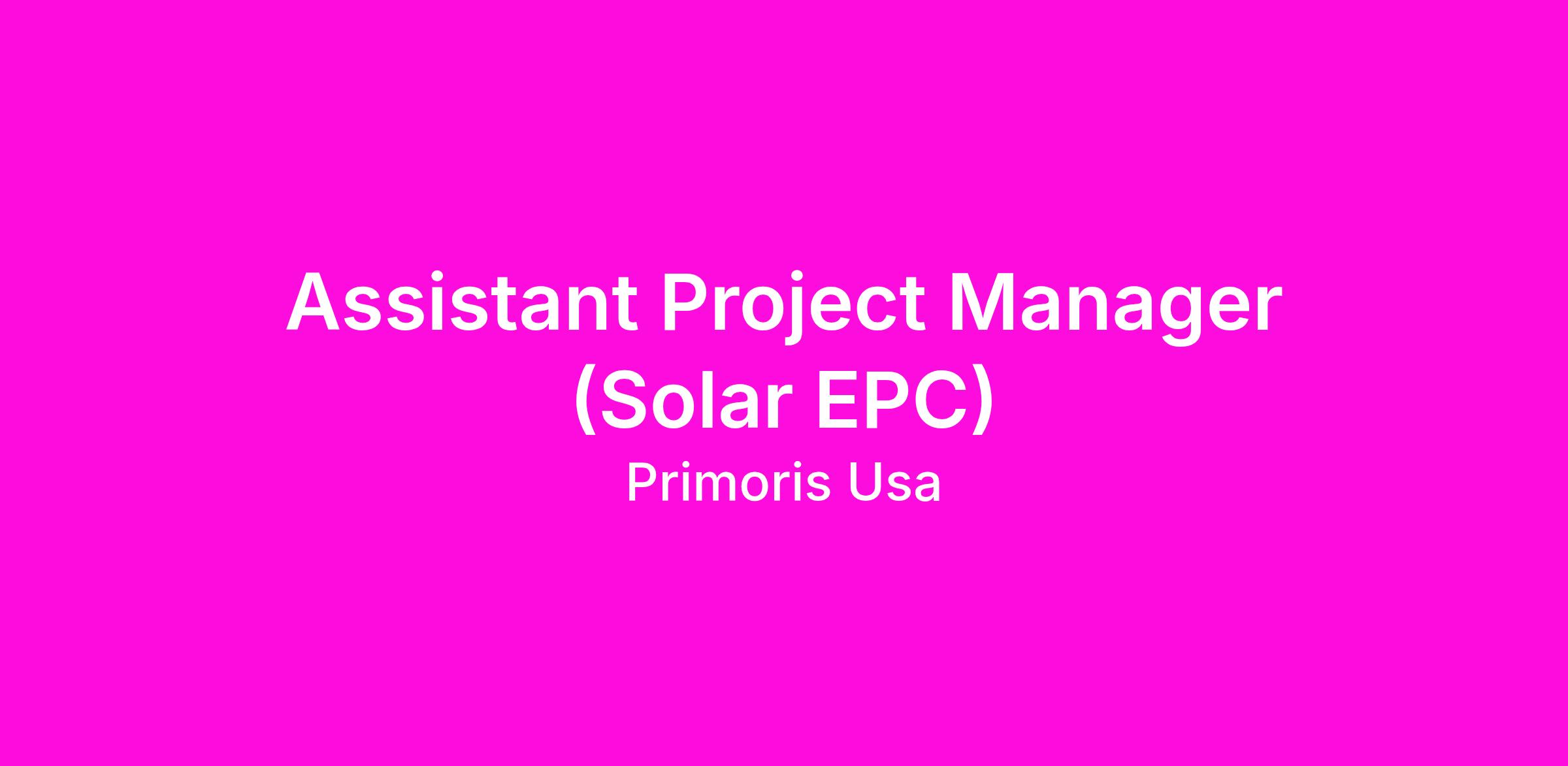 Assistant Project Manager (Solar EPC)