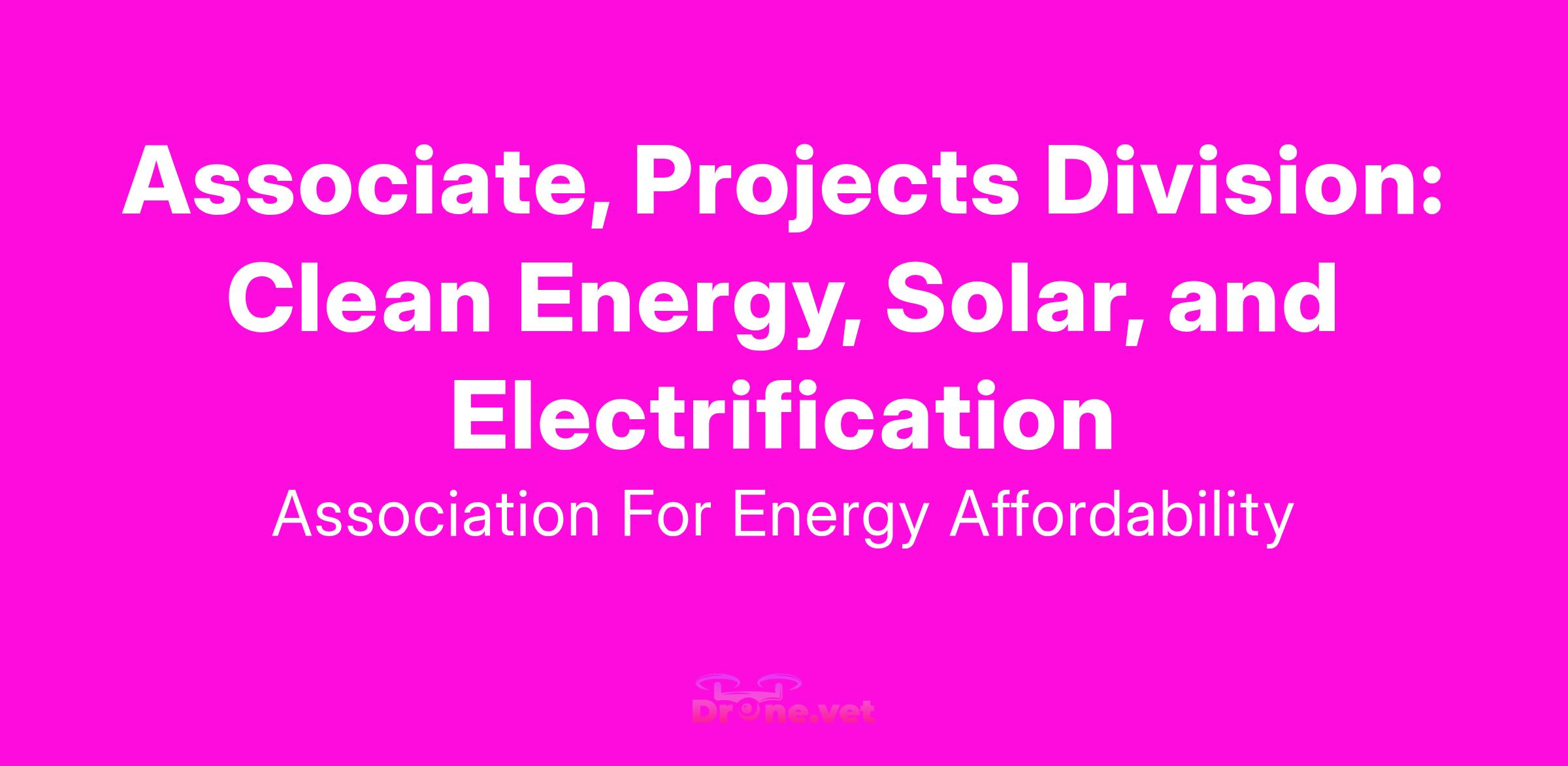 Job Title: Associate, Projects Division: Clean Energy, Solar, and Electrification