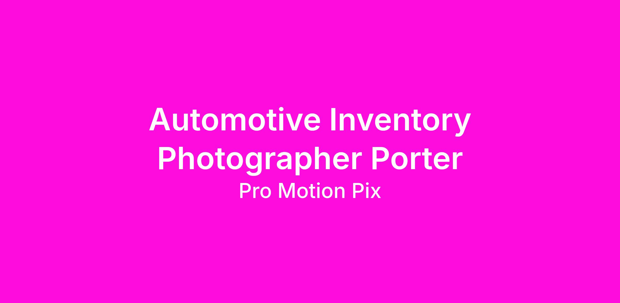 Pro-MotionPix is looking for a full-time Automotive Dealership Photographer to join our team to photograph and video dealership vehicles for sale using a company issued iPhone.