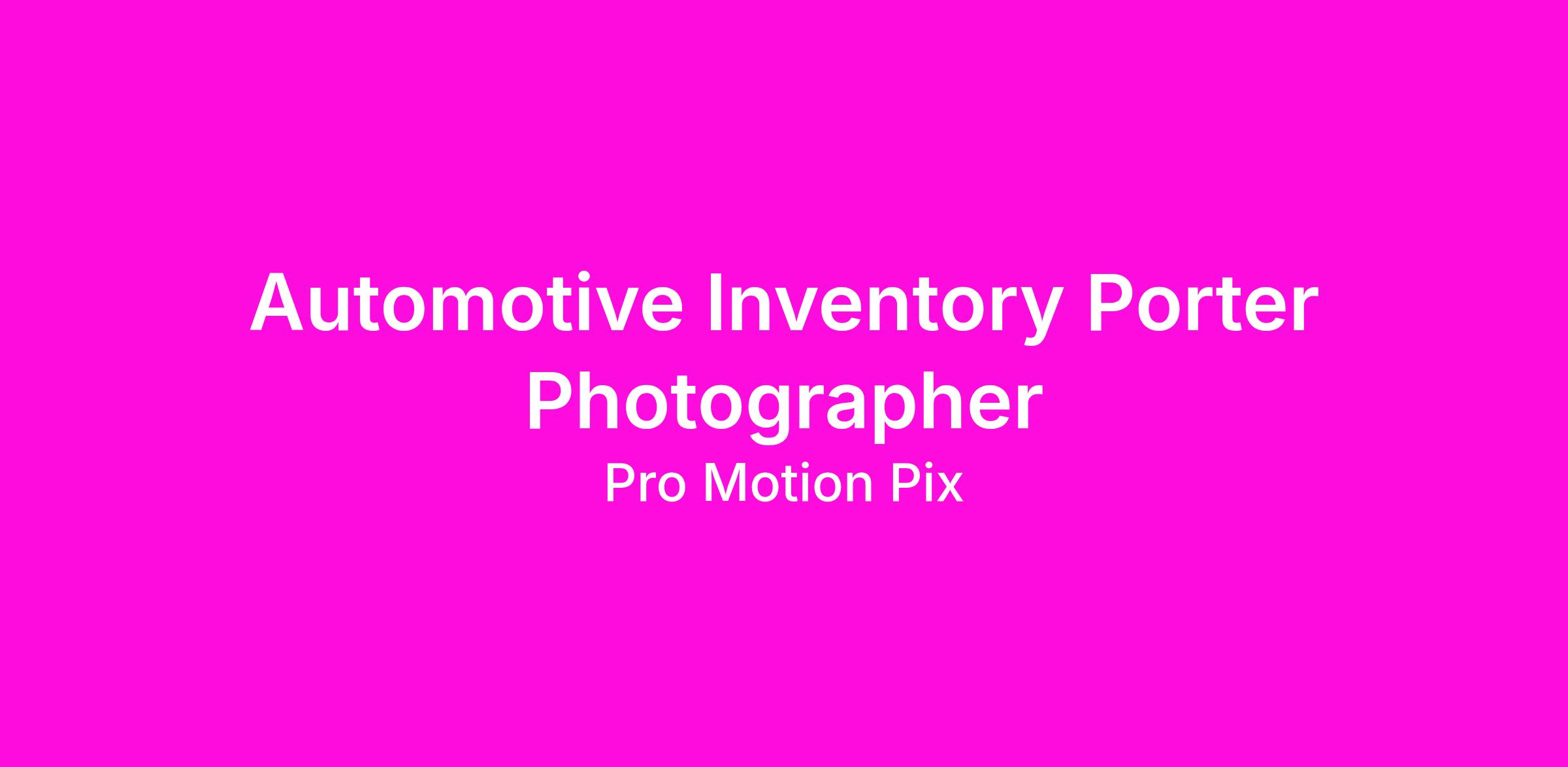 Pro-MotionPix is seeking a full-time Automotive Inventory Technician to help manage, organize, and photograph dealership vehicle inventory for online listings.
