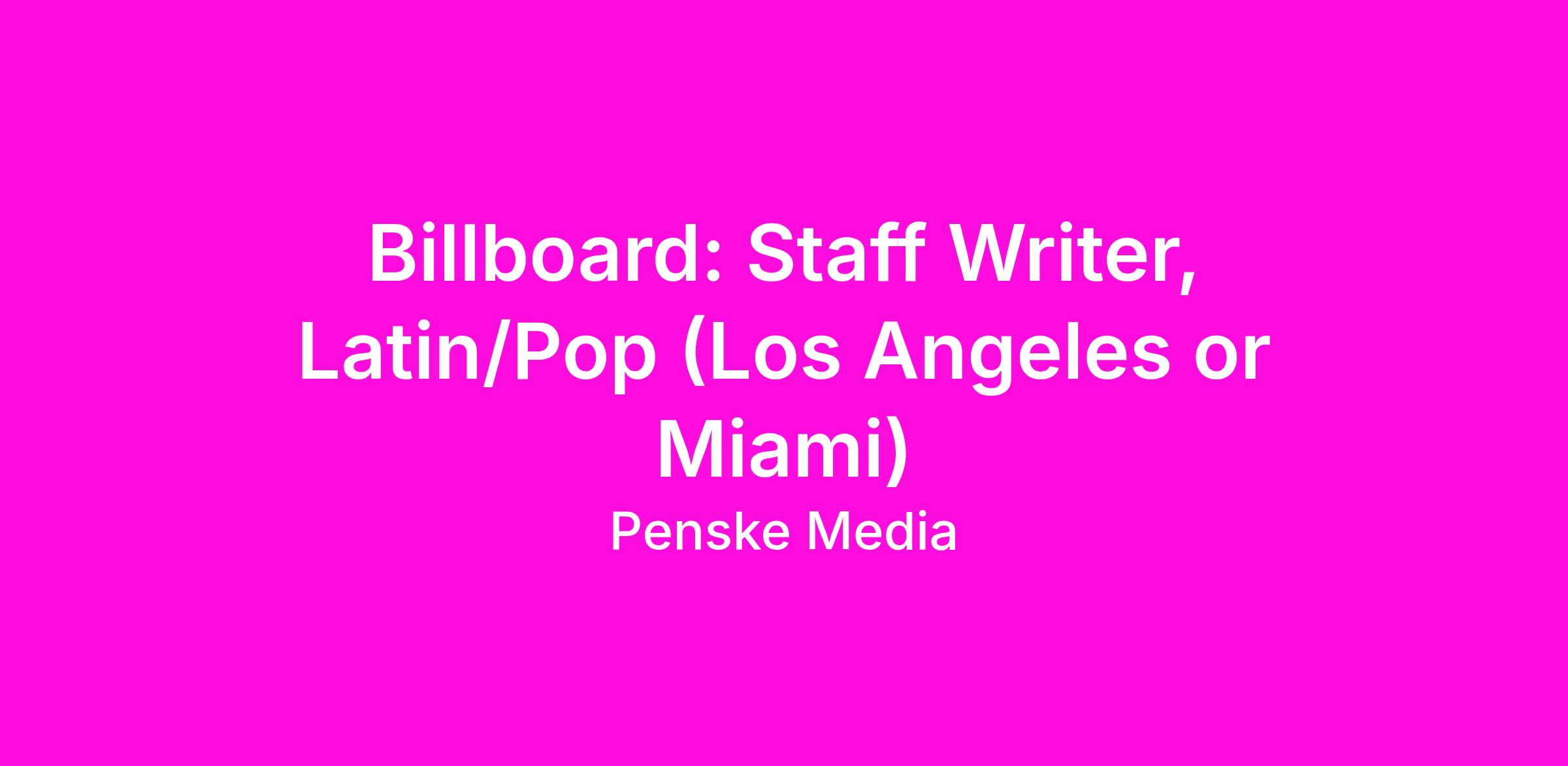 Billboard: Staff Writer, Latin/Pop (Los Angeles or Miami)