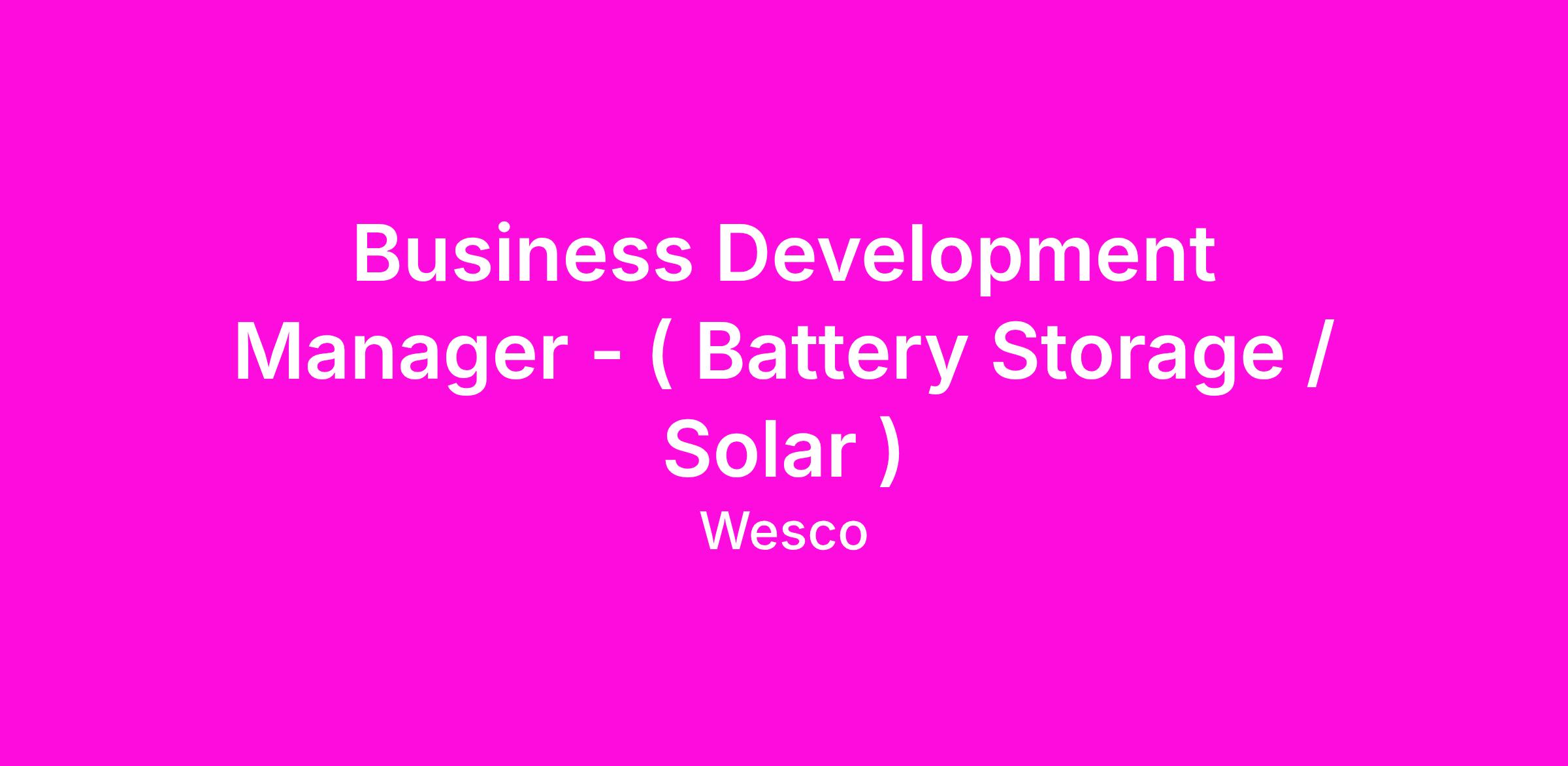 Business Development Manager - ( Battery Storage / Solar )