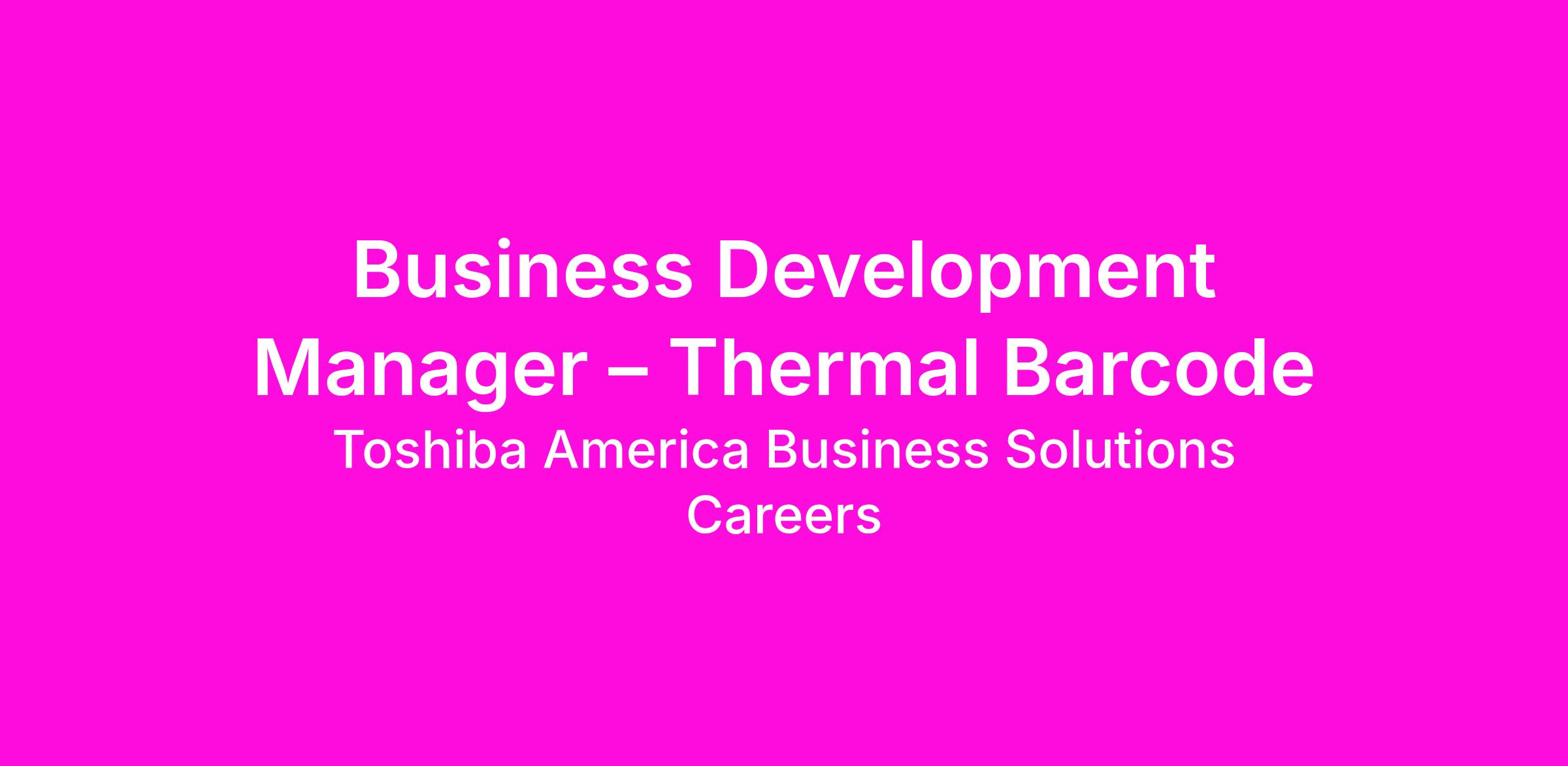 Toshiba America Business Solutions, Inc. is a global industry leader in digital displays, document security and software solutions. We currently have an excellent opportunity for a Business Development Manager – Thermal Barcode to work remotely supporting the Northeast Territories