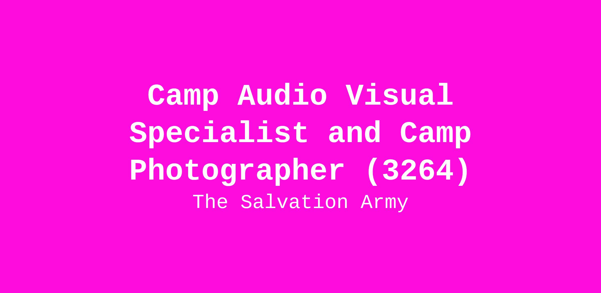 Prepare, plan, and operate audio/visual equipment for meetings, events, classes, seminars at the Salvation Army camps. Ensure camp activities are recorded to be used in Salvation Army publications. Captures video/pictures for Salvation Army publications.