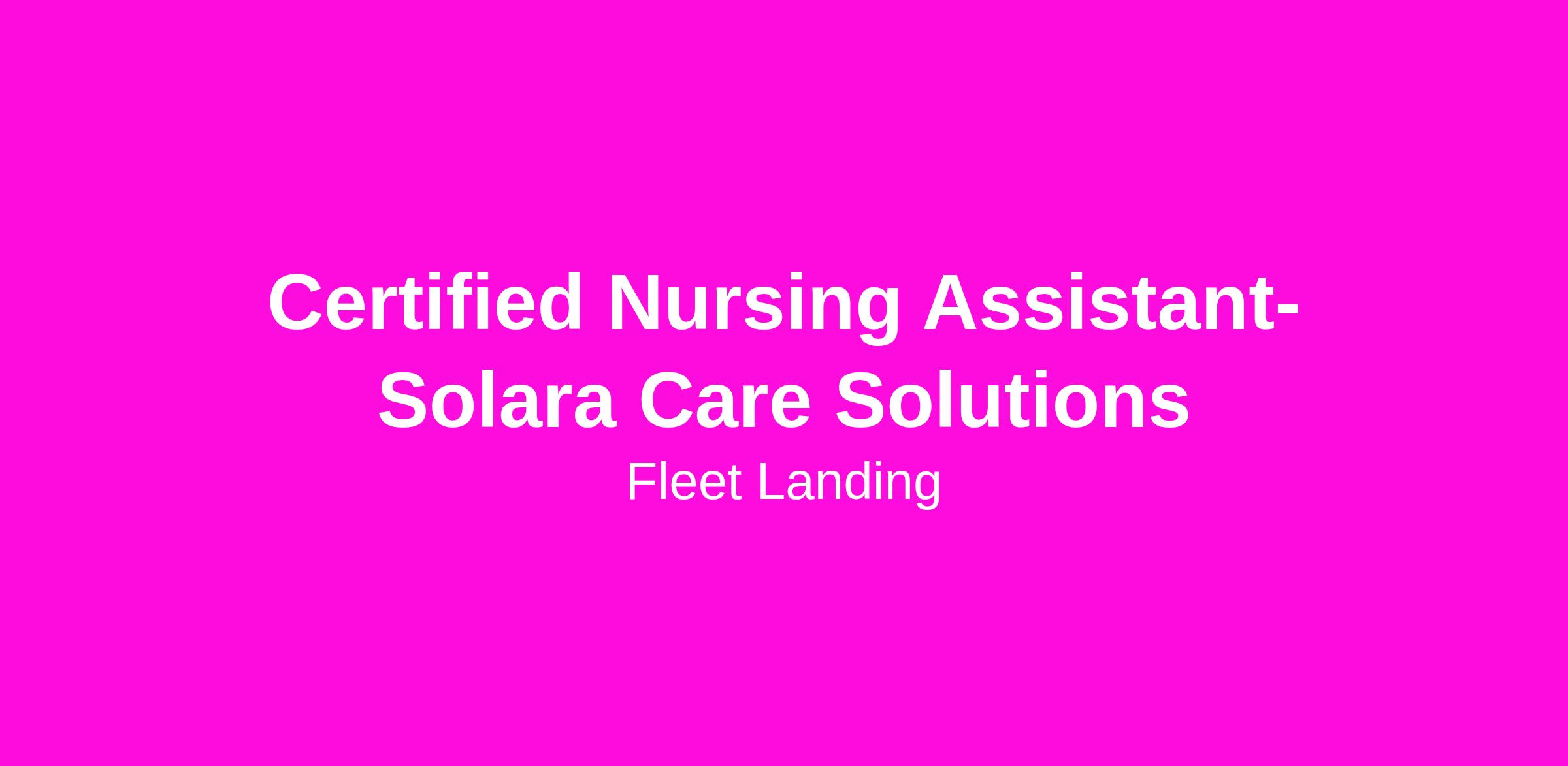 We are seeking a Home Health Certified Nursing Assistant (C.N.A.) whose primary responsibility is to companion care or routine, hands-on care and assistance to clients receiving services through Solara Care Solutions. This role is essential to supporting independence, dignity, and quality of life for those we serve.