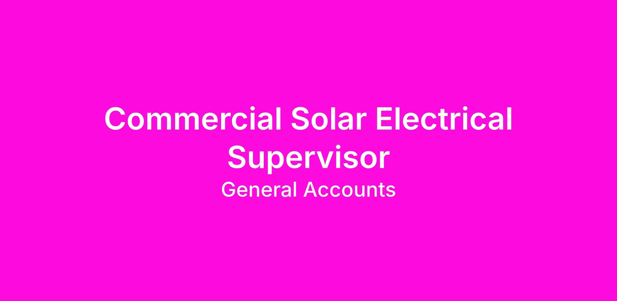 The Commercial Solar Electrical Supervisor will manage the electrical team, by assigning work, maintaining job records, and providing day-to-day guidance. You will also plan and schedule electrical projects, estimate time and materials, prepare the team for project work, and ensure accurate documentation is maintained.