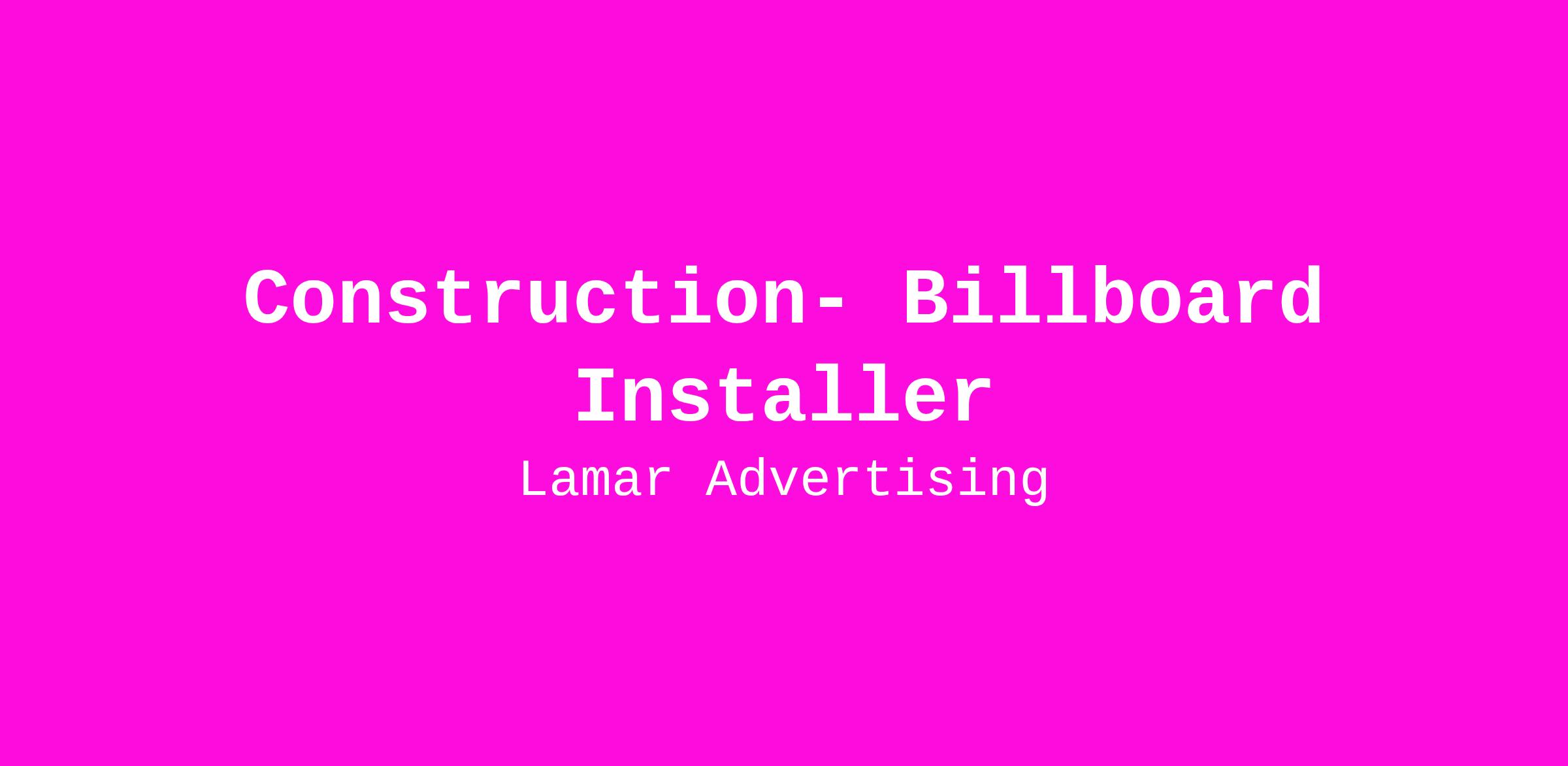 Want a career that takes you above the everyday? As part of Lamar’s billboard construction and operations crew, you’ll experience the city from a bird’s-eye view while building and maintaining the structures that keep communities informed. Join a team that values safety, teamwork, and adventure—every single day.