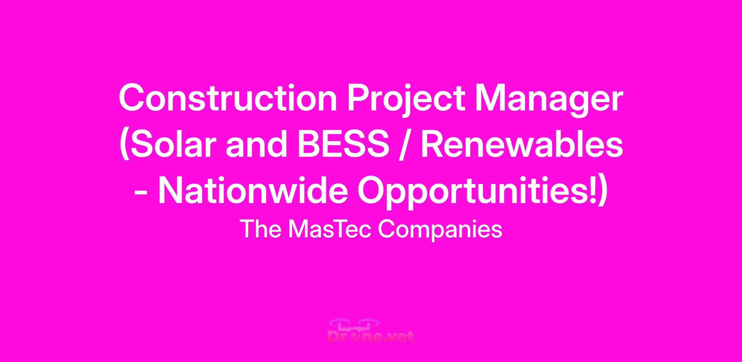 Construction Project Manager (Solar and BESS / Renewables - Nationwide Opportunities!)