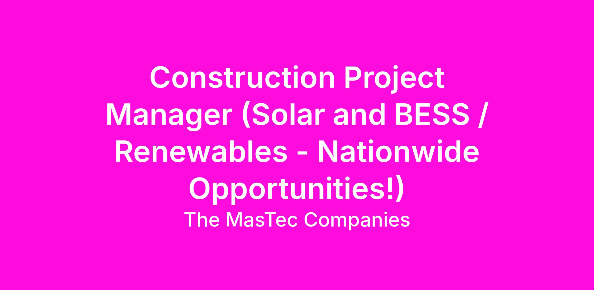 Join the movement to power a cleaner future. We’re seeking an experienced and driven Renewables Construction Project Manager to lead utility-scale solar or battery energy storage projects across the United States. In this pivotal role, you’ll serve as the single point of accountability for delivering safe, high-quality, and profitable projects—on time and on budget.