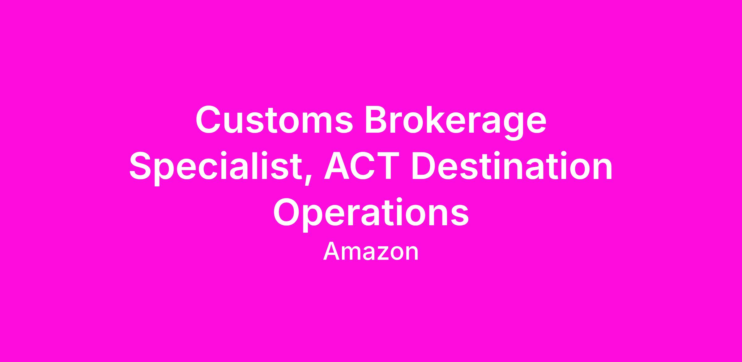 At Amazon, we're committed to being Earth's most customer-centric company. The Amazon Customs & Trade (ACT) team plays a critical role in that mission — delivering end-to-end customs brokerage services that keep global supply chains moving efficiently and compliantly.