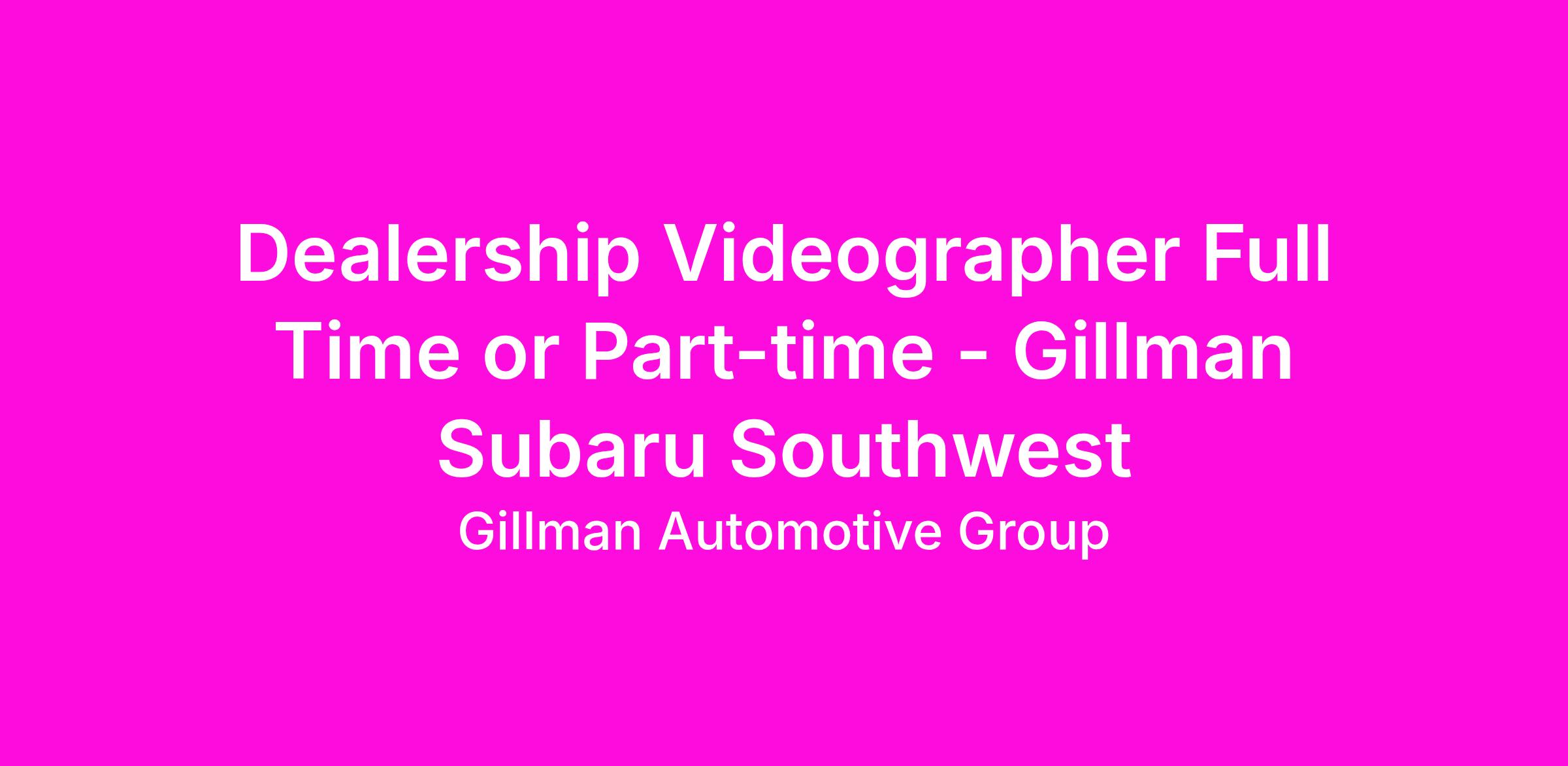 Dealership Videographer Full Time or Part-time - Gillman Subaru Southwest