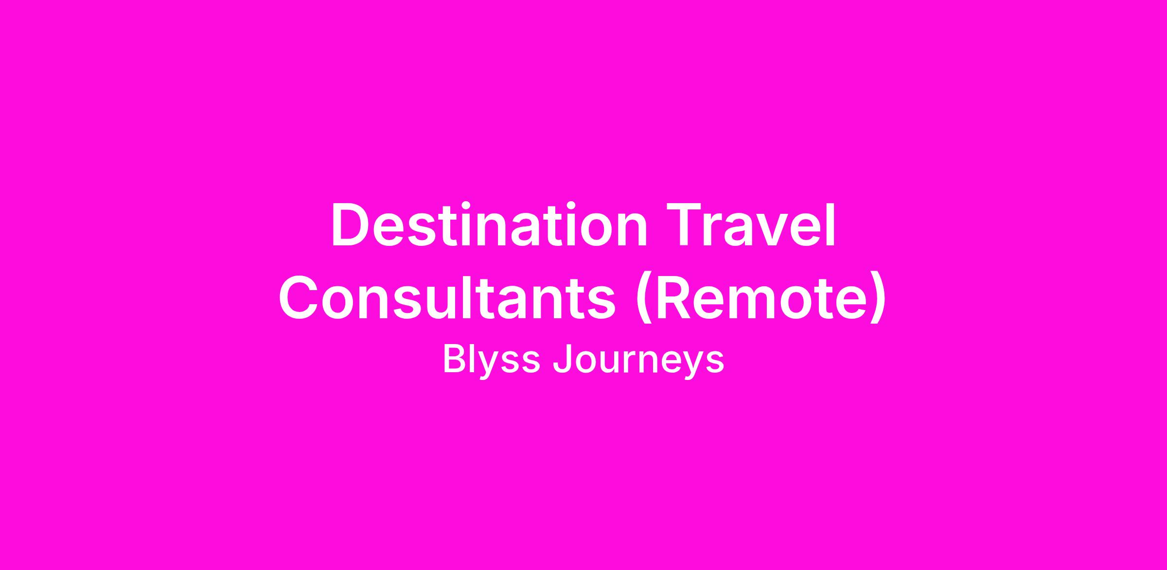Destination Travel Consultants assist travelers in designing personalized trips to destinations around the world. This role focuses on researching travel options, presenting curated recommendations, and helping travelers organize memorable itineraries based on their preferences.