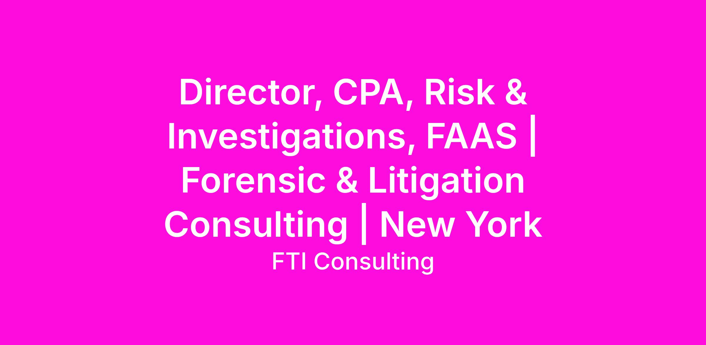 FTI is looking for accounting professionals with five or more years of technical accounting and related experience. As a Director you will be responsible for providing technical accounting and finance advisory services and other analytical skills to clients.