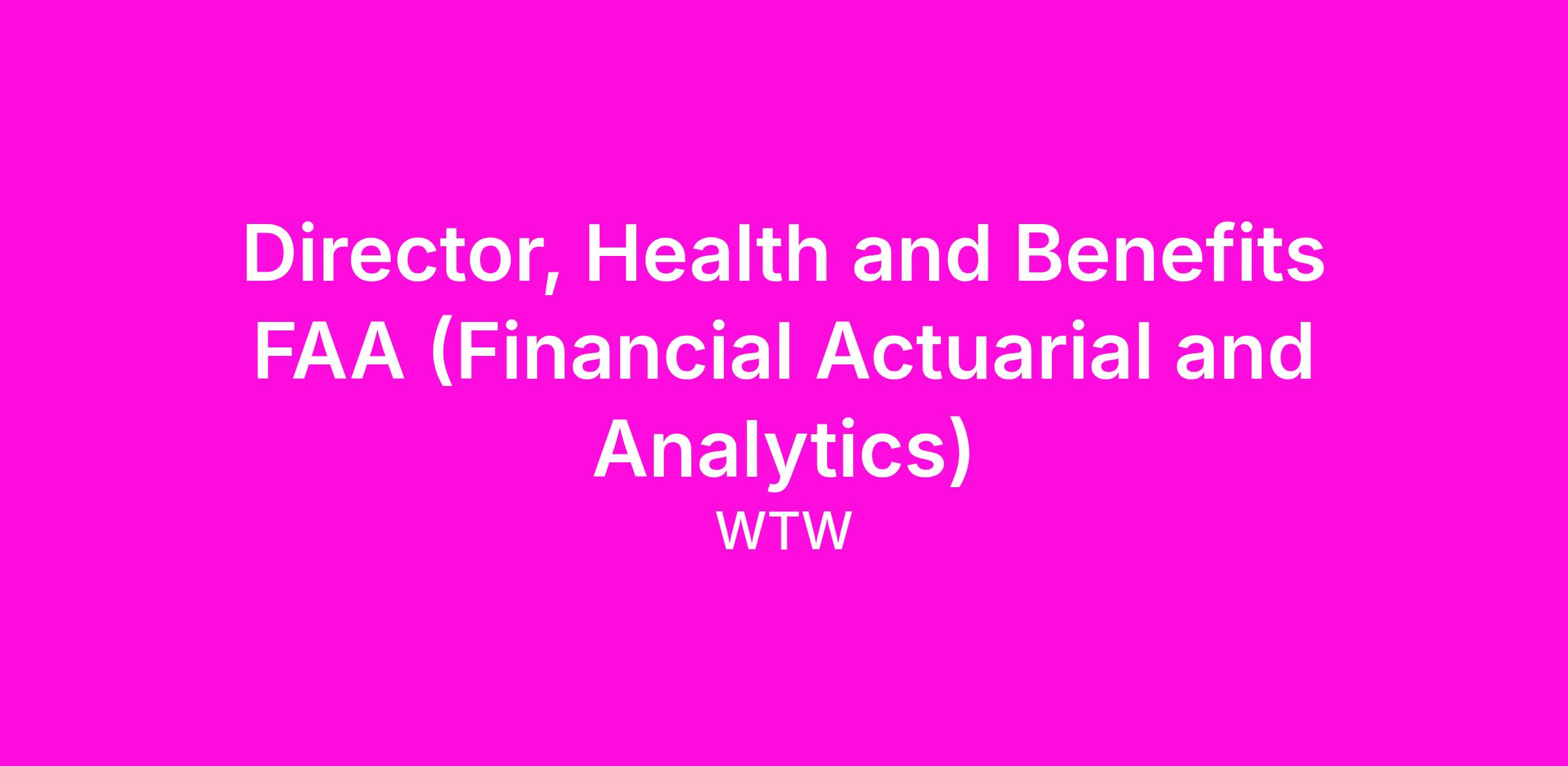DescriptionAs a Healthcare Financial/Actuarial Director you will be a key member of the Financial Actuarial & Analytics (FAA) Community of Expertise. You will lead clients’ financial/actuarial engagements for a portfolio of clients and/or significantly contribute to complex clients across the full spectrum of employer health and group benefit programs including medical, dental, life, disability, etc. In partnership with Client Service colleagues, you will communicate FAA concepts, strategies and results that effectively drive client action and improve plan performance, and will have the opportunity to work on cutting edge projects alongside leaders in the industry.