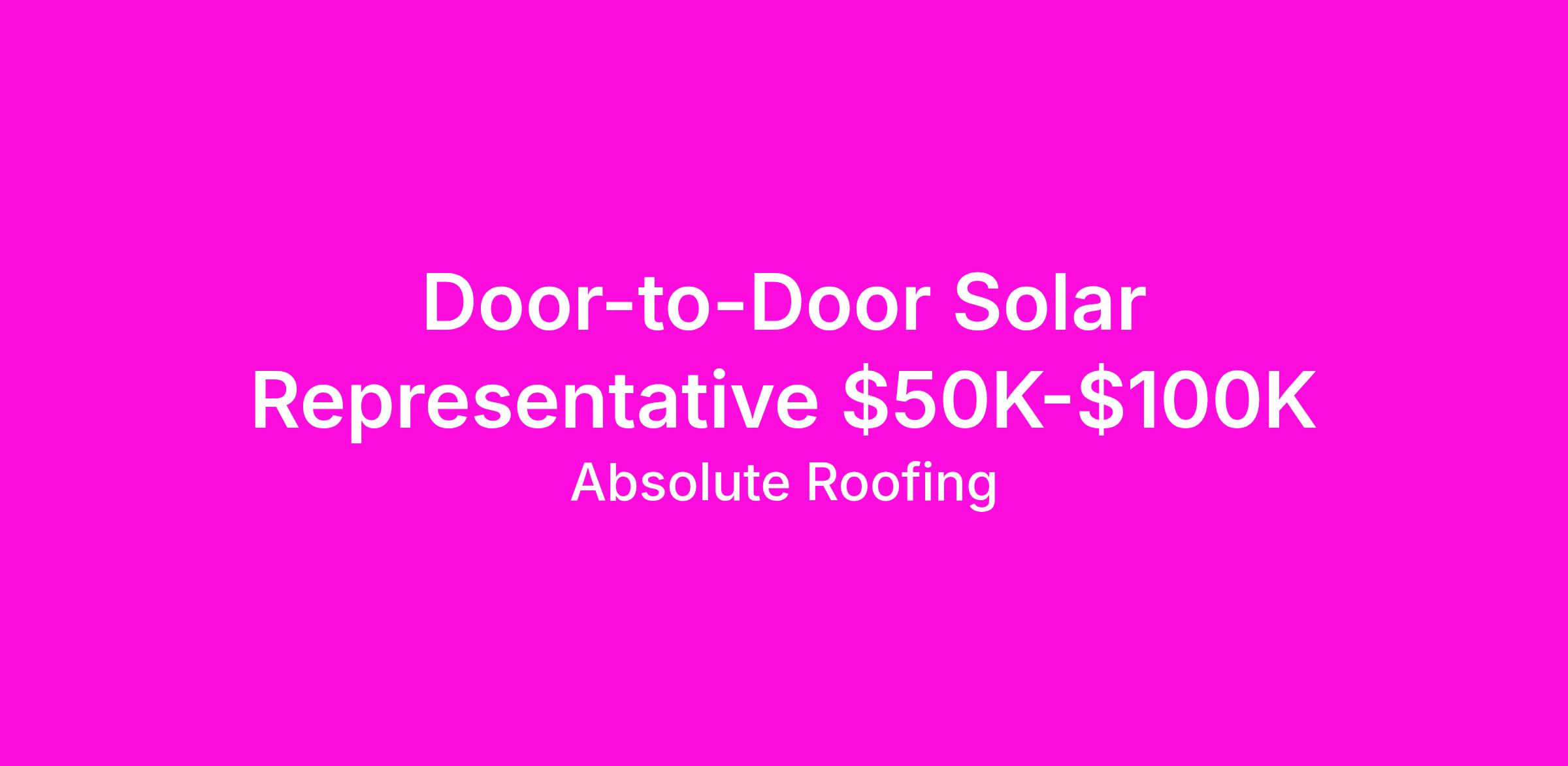 Door-to-Door Solar Representative - Generate Leads of homeowners interested in solar and learn how to conduct presentations and sell Solar