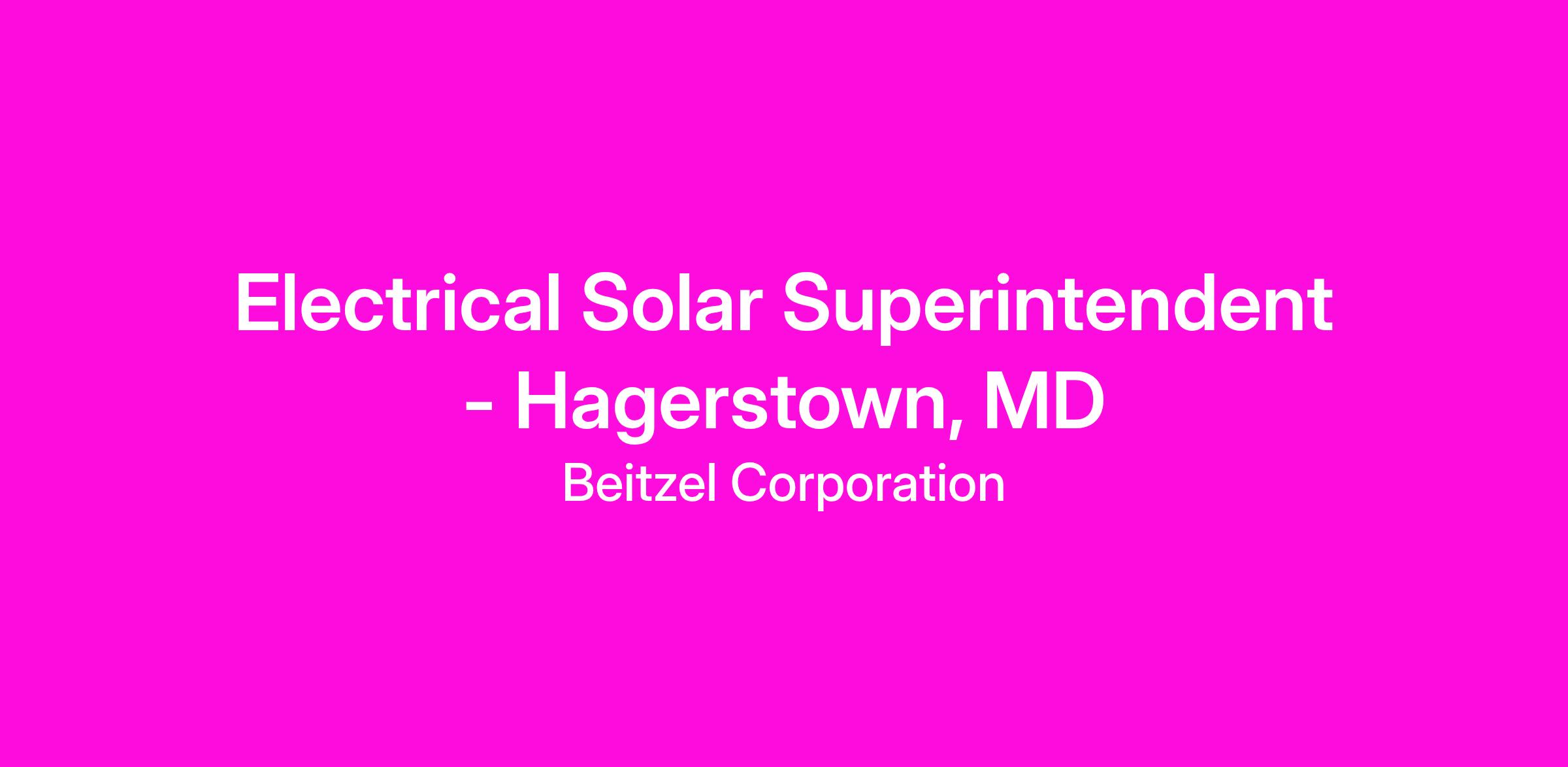 Electrical Solar Superintendent - Hagerstown, MD