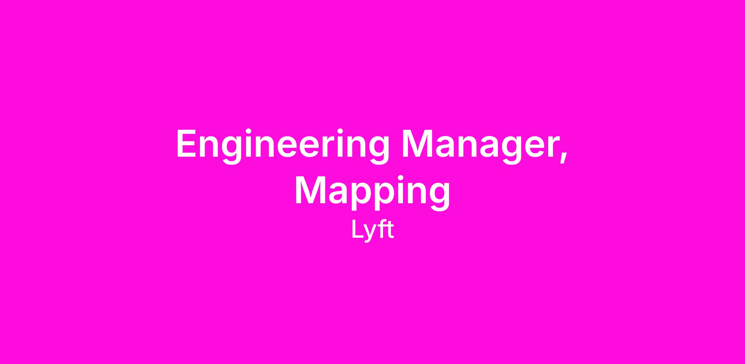 Lyft’s engineering team is growing rapidly, and we are looking for engineering managers to help us scale. Our engineers are smart, flexible, and love solving difficult challenges. They look to their managers for organizational transparency, career development, mentorship, and honest feedback. They move fast and ship code to production continuously, relying on their leadership to increase productivity by removing obstacles and keeping processes lean. Our engineering managers are people with varying technical backgrounds and interests -- some are involved in the technical details of their team and others provide general technical direction and oversight. As managers, our job is to keep teams efficient and executing on the right goals. We build teams that are inclusive, helpful, and have a strong sense of ownership for the things they build.
