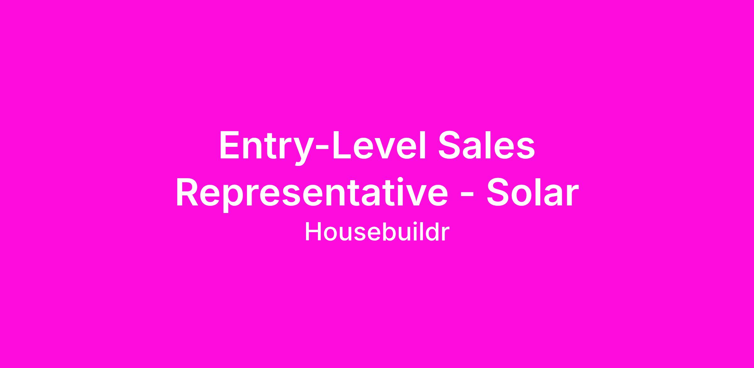 Entry-Level Sales Representative - Solar