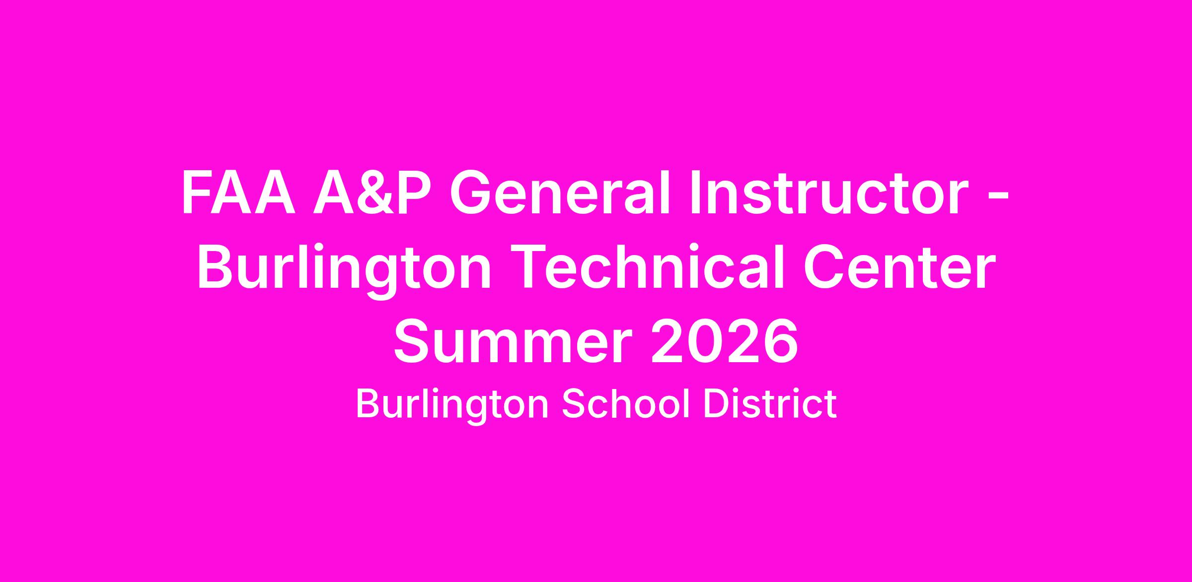 FAA A&P General Instructor - Burlington Technical Center Summer 2026