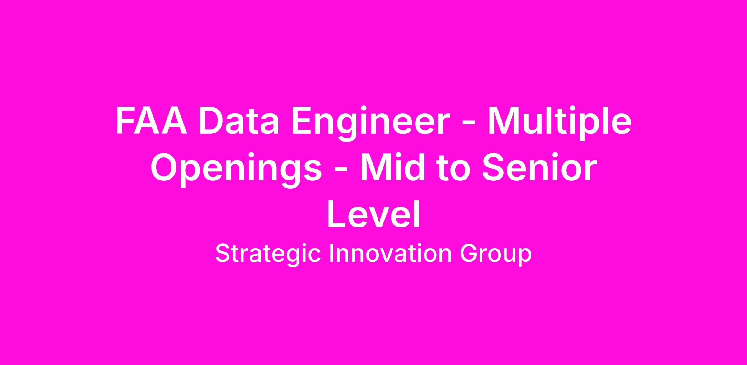 FAA Data Engineer - Multiple Openings - Mid to Senior Level