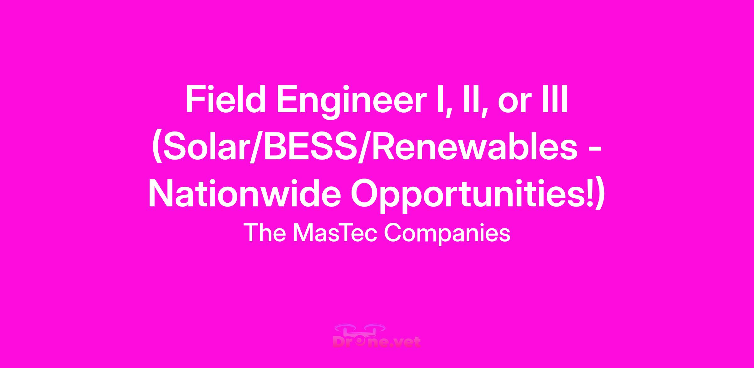 Field Engineer I, II, or III (Solar/BESS/Renewables - Nationwide Opportunities!)