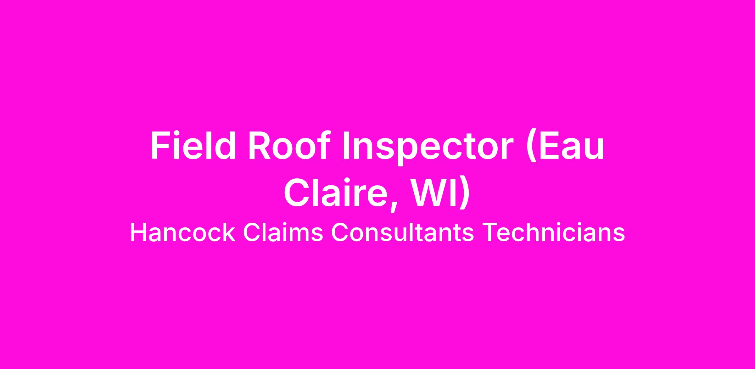 Field Roof Inspector (Eau Claire, WI)