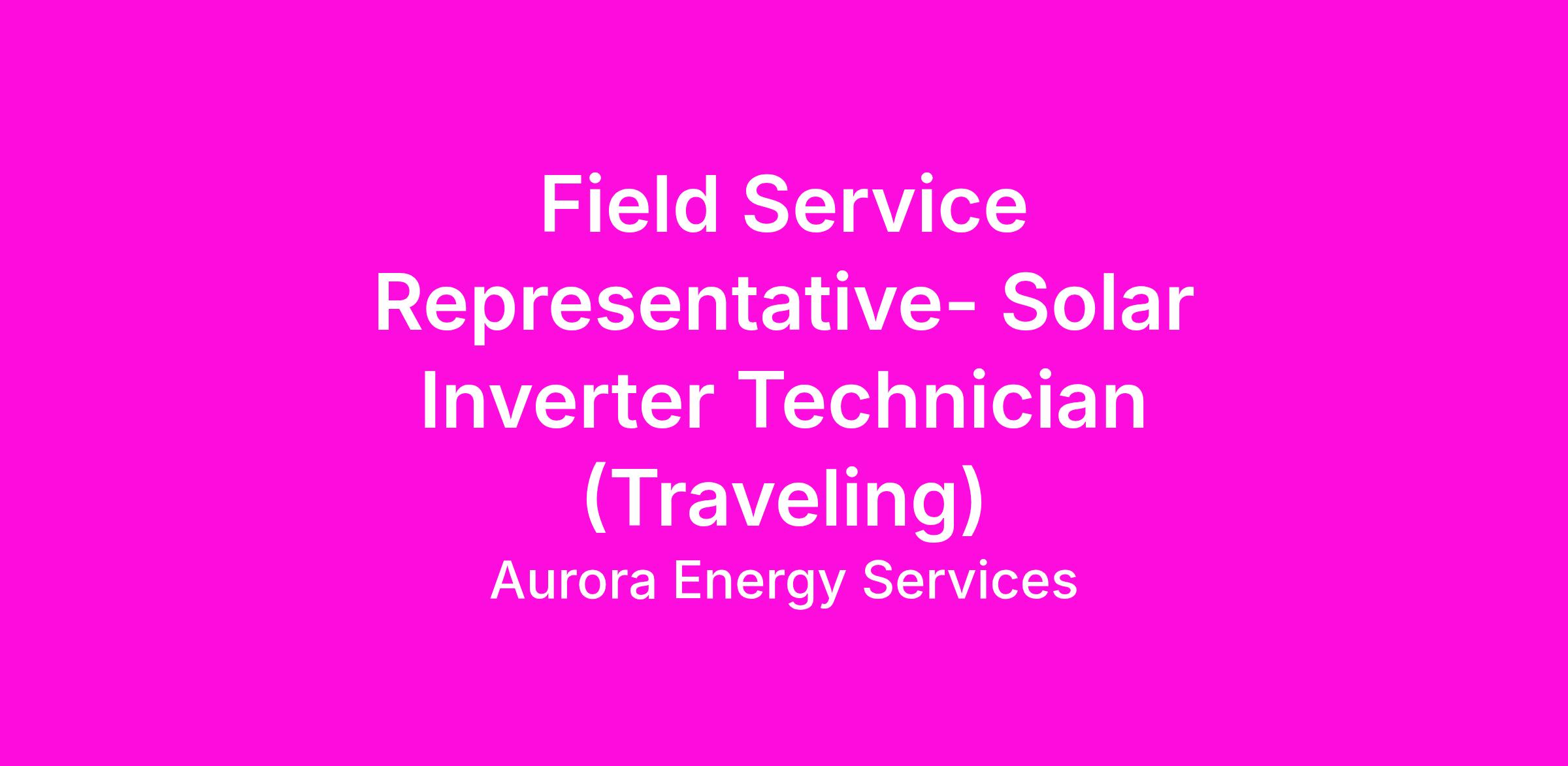 Aurora is seeking experienced Field Service Representatives to support inverter-focused work across utility-scale and commercial solar sites nationwide. This role is responsible for commissioning, troubleshooting, maintenance, and repair of solar inverters and associated systems in the field.