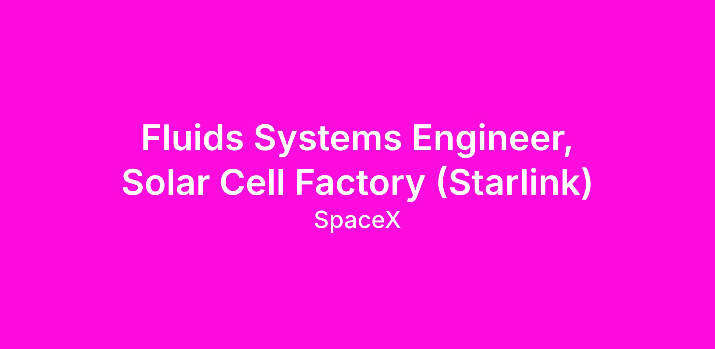 FLUIDS SYSTEMS ENGINEER, SOLAR CELL FACTORY (STARLINK)