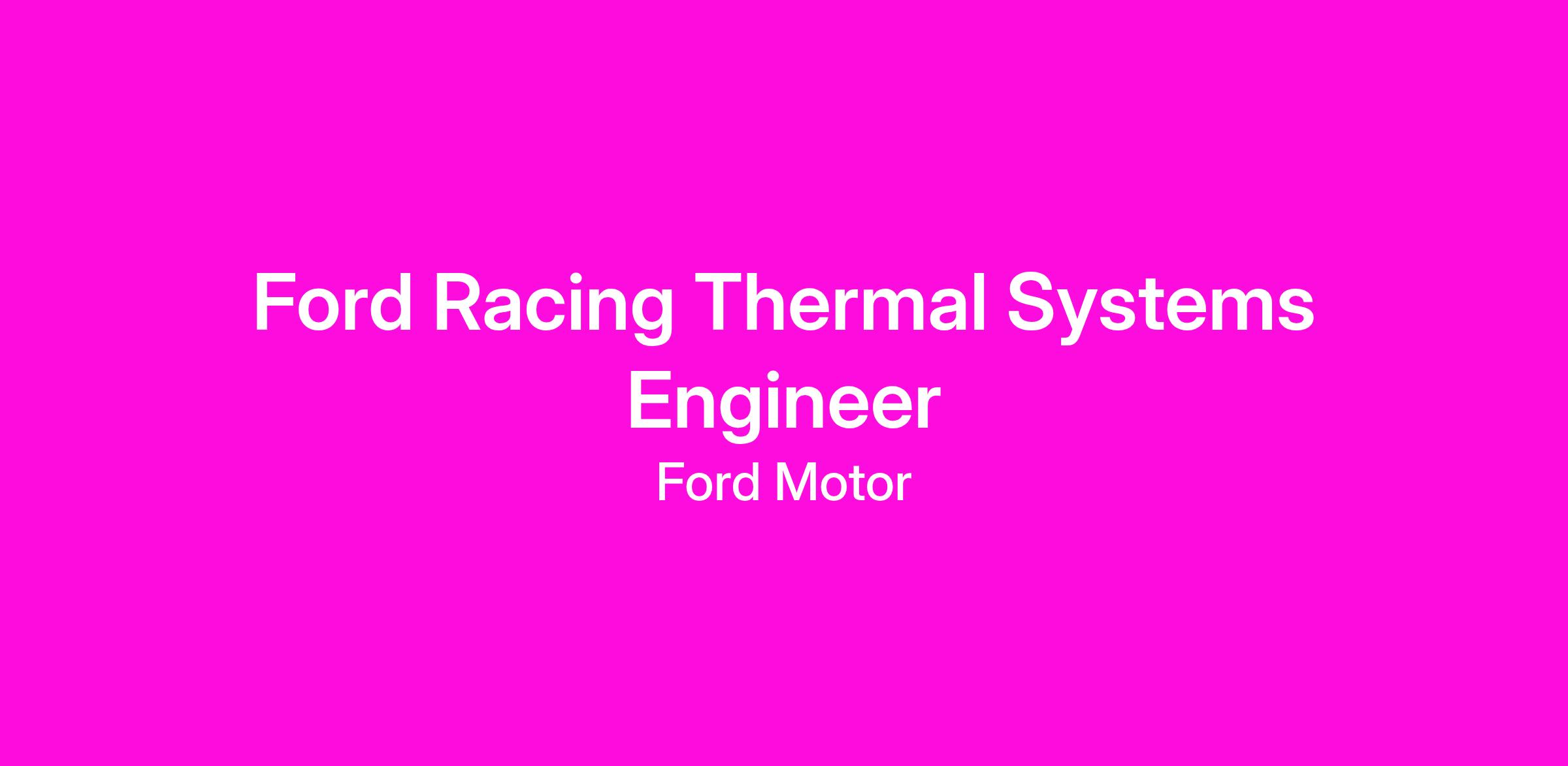 DescriptionThis role involves extensive cross-functional collaboration, target setting, modeling, validation testing, and risk management to ensure that Ford Racing production vehicles meet or exceed performance targets while adhering to program milestones. The thermal systems engineer will also be responsible for identifying and resolving trade-offs between competing attributes, developing roadmaps for improvement, and communicating attribute status to stakeholders. You will work closely with cross‑functional teams (Powertrain, Aerodynamics, Studio, Body Engineering, CAD/CAE resources and motorsport) to architect thermal solutions that meet aggressive performance targets.