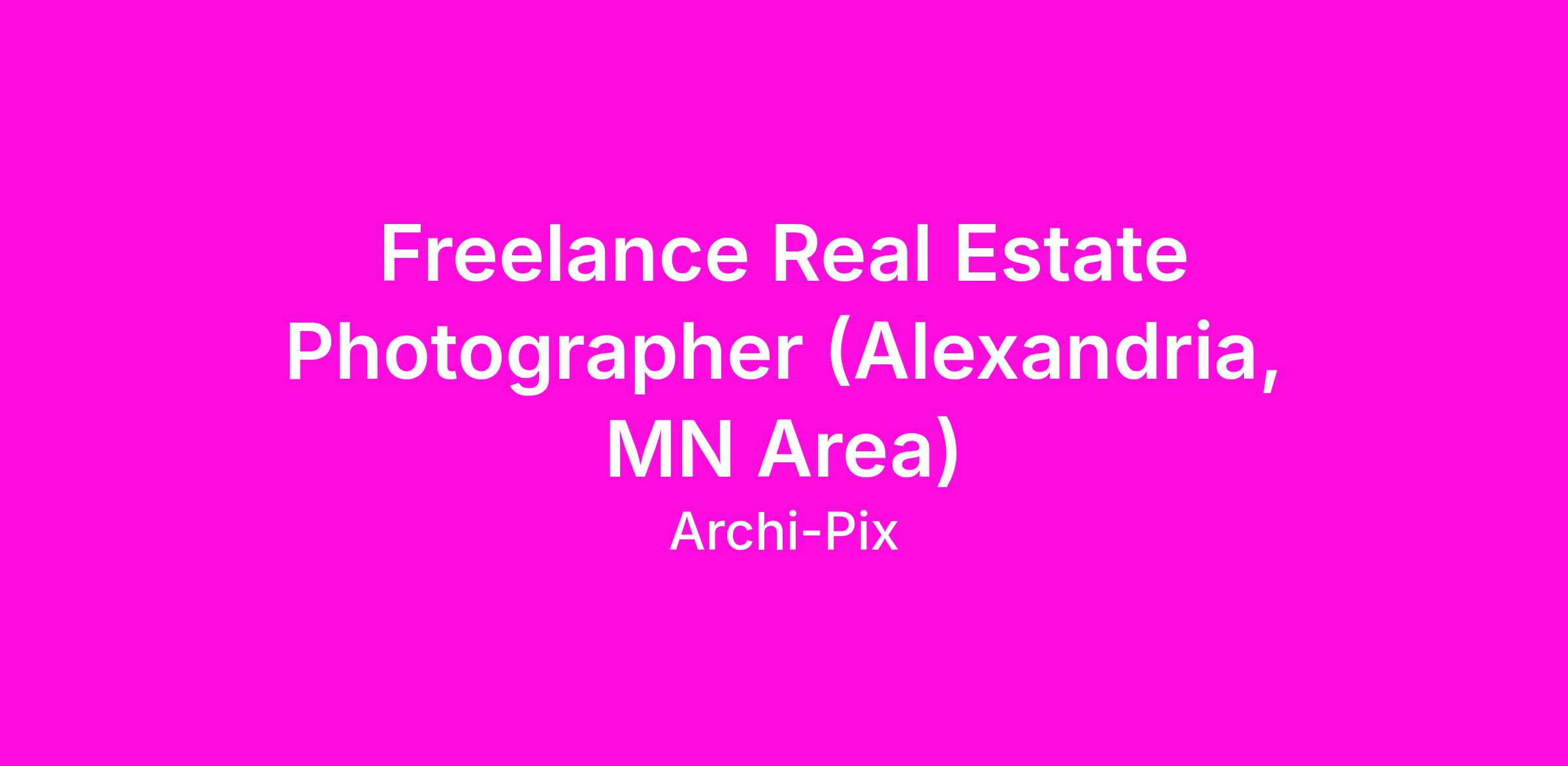 Archi-pix is a real estate media company and we are looking to expand our team of contracted part-time photographers in the Alexandria, MN area. Flexible schedule and great pay for motivated individuals. No photo editing required! If you are looking for a position as a professional photographer, this could be the job for you. No need to have previous real estate photography experience. Photographers are paid by the shoot. Typical pay range is $60 - $200 per shoot (depends on photography package ordered by client and can be higher than $200 at times) and each appointment typically takes an hour or less. Photographers may have as many as 4-5 appointments per day. Photographer Requirements: