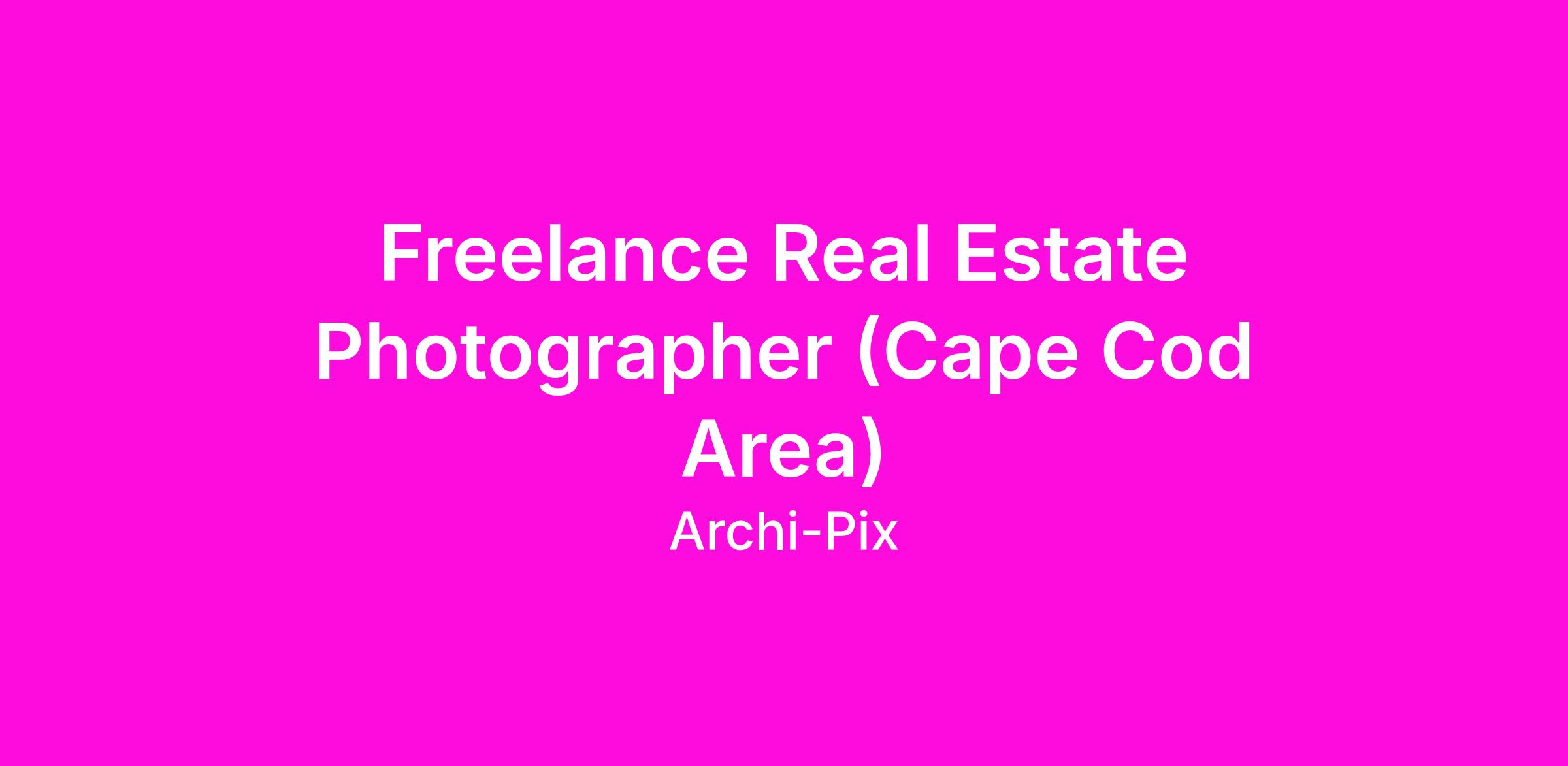 Archi-pix is a real estate media company and we are looking to expand our team of contracted part-time photographers in the Cape Cod area.  Flexible schedule and great pay for motivated individuals. No photo editing required!