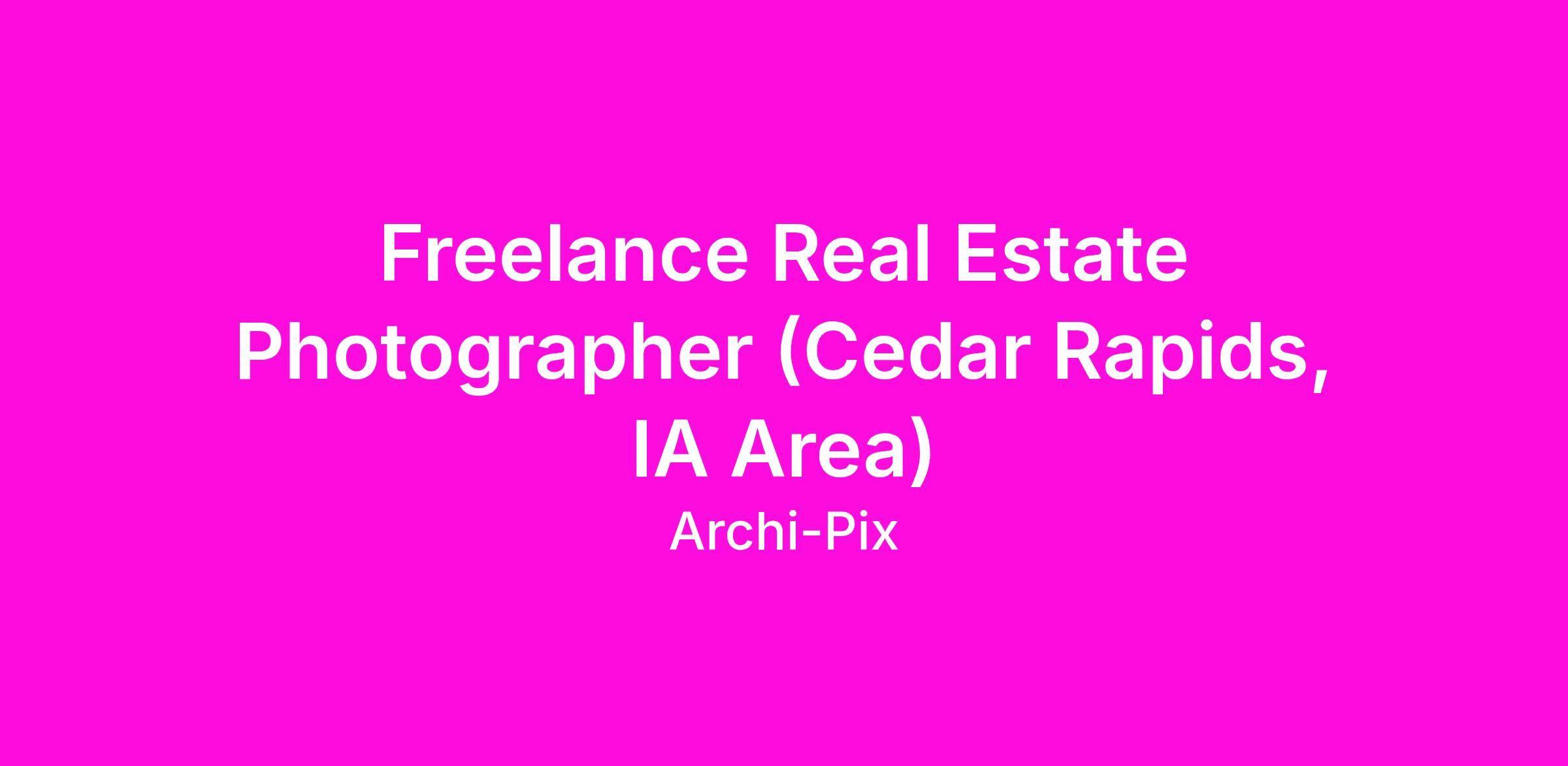 Archi-pix is a real estate media company and we are looking to expand our team of contracted part-time photographers in the Cedar Rapids, IA area. Flexible schedule and great pay for motivated individuals. No photo editing required! If you are looking for a position as a professional photographer, this could be the job for you. No need to have previous real estate photography experience. Photographers are paid by the shoot. Typical pay range is $60 - $200 per shoot (depends on photography package ordered by client and can be higher than $200 at times) and each appointment typically takes an hour or less. Photographers may have as many as 4-5 appointments per day. Photographer Requirements: