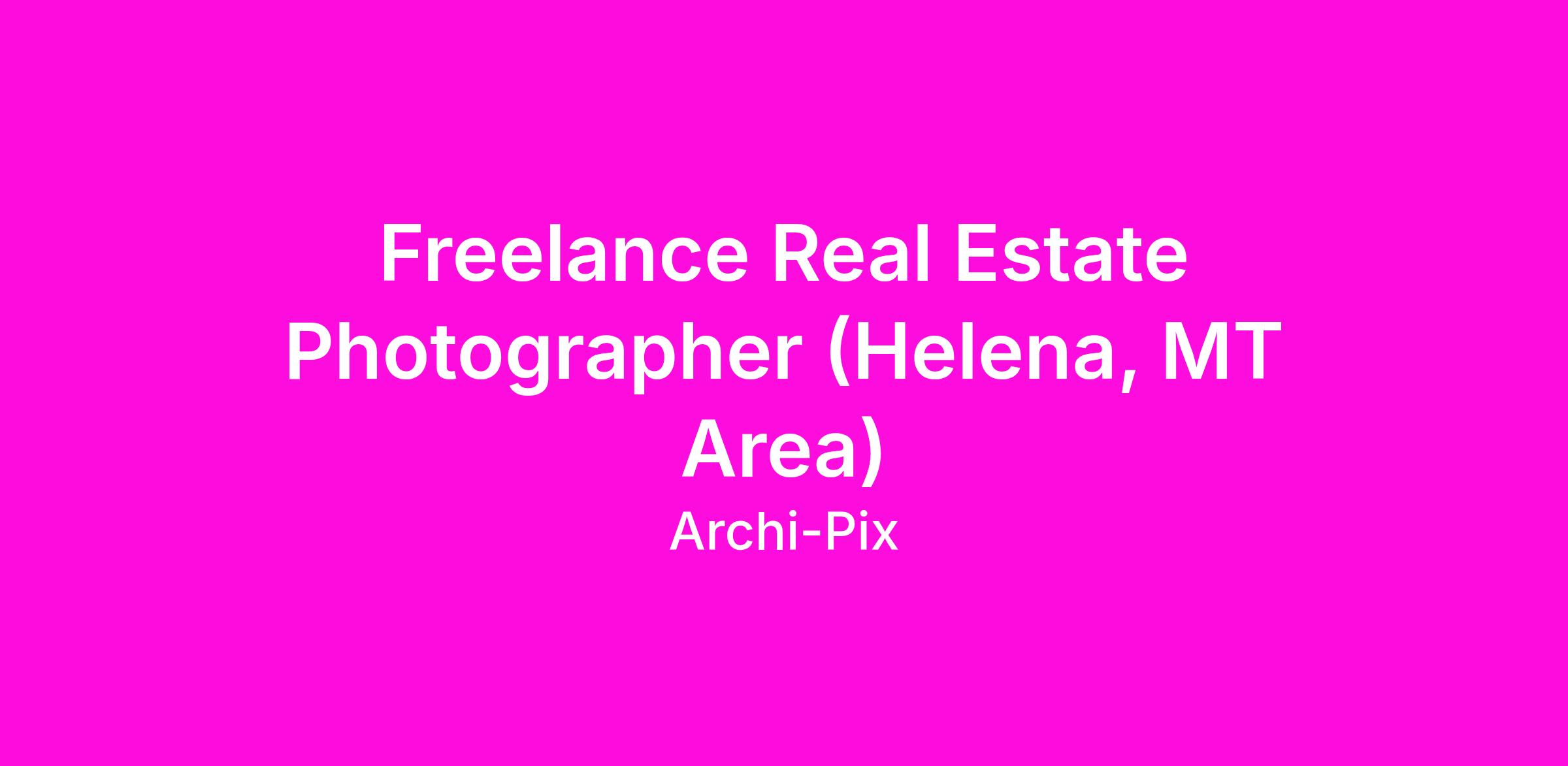 Archi-pix is a real estate media company and we are looking to expand our team of contracted part-time photographers in the Helena, MT area.  Flexible schedule and great pay for motivated individuals. No photo editing required!