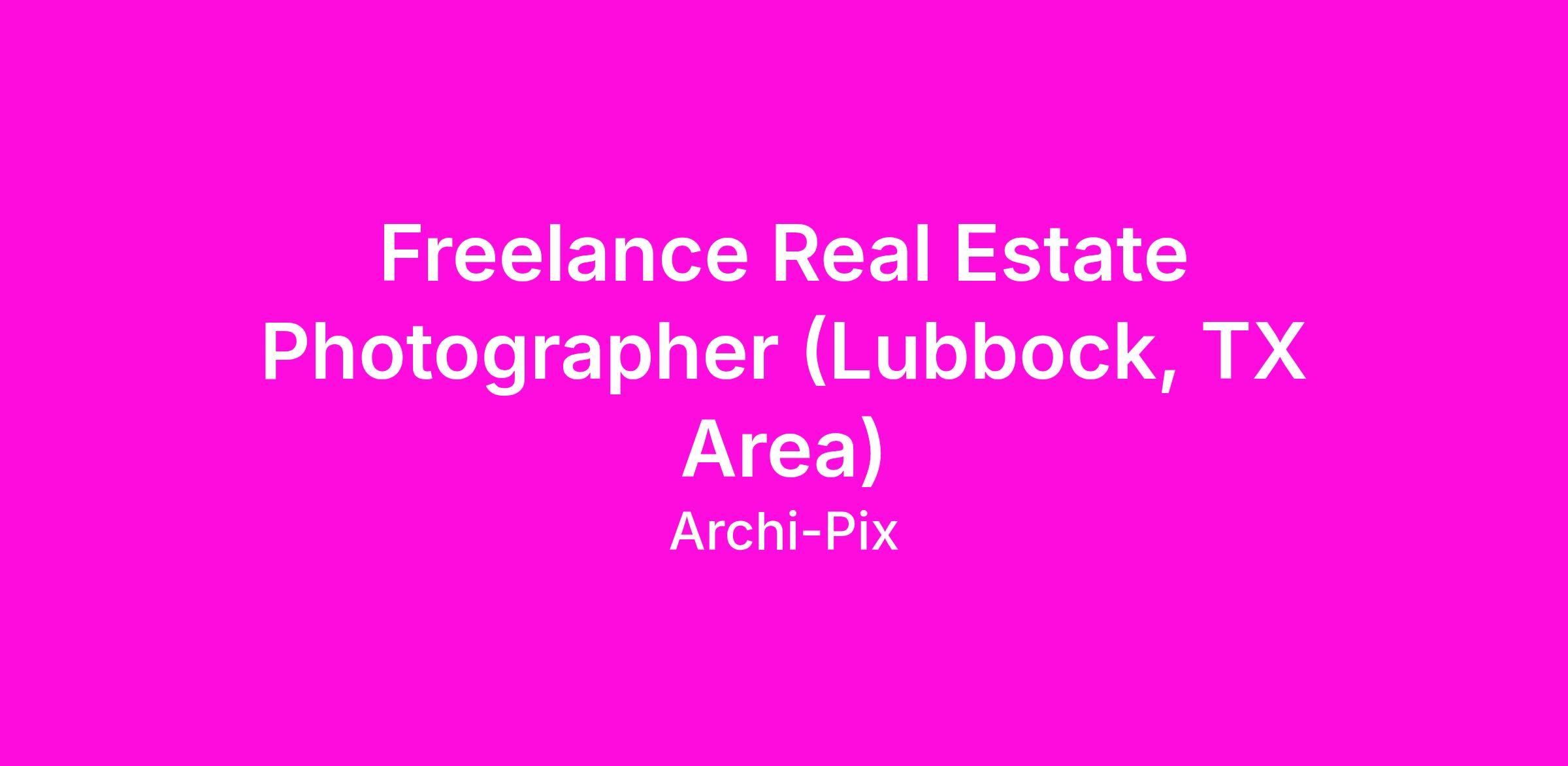Archi-pix is a real estate media company and we are looking to expand our team of contracted part-time photographers in the Lubbock, TX area. Flexible schedule and great pay for motivated individuals. No photo editing required! If you are looking for a position as a professional photographer, this could be the job for you. No need to have previous real estate photography experience. Photographers are paid by the shoot. Typical pay range is $60 - $200 per shoot (depends on photography package ordered by client and can be higher than $200 at times) and each appointment typically takes an hour or less. Photographers may have as many as 4-5 appointments per day. Photographer Requirements: