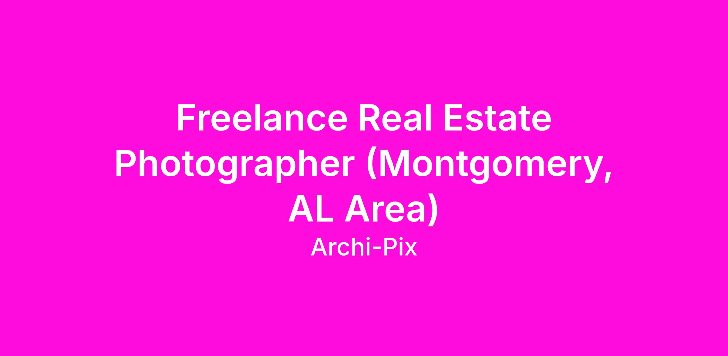 Archi-pix is a real estate media company and we are looking to expand our team of contracted part-time photographers in the Montgomery, AL area. Flexible schedule and great pay for motivated individuals. No photo editing required! If you are looking for a position as a professional photographer, this could be the job for you. No need to have previous real estate photography experience. Photographers are paid by the shoot. Typical pay range is $60 - $200 per shoot (depends on photography package ordered by client and can be higher than $200 at times) and each appointment typically takes an hour or less. Photographers may have as many as 4-5 appointments per day. Photographer Requirements: