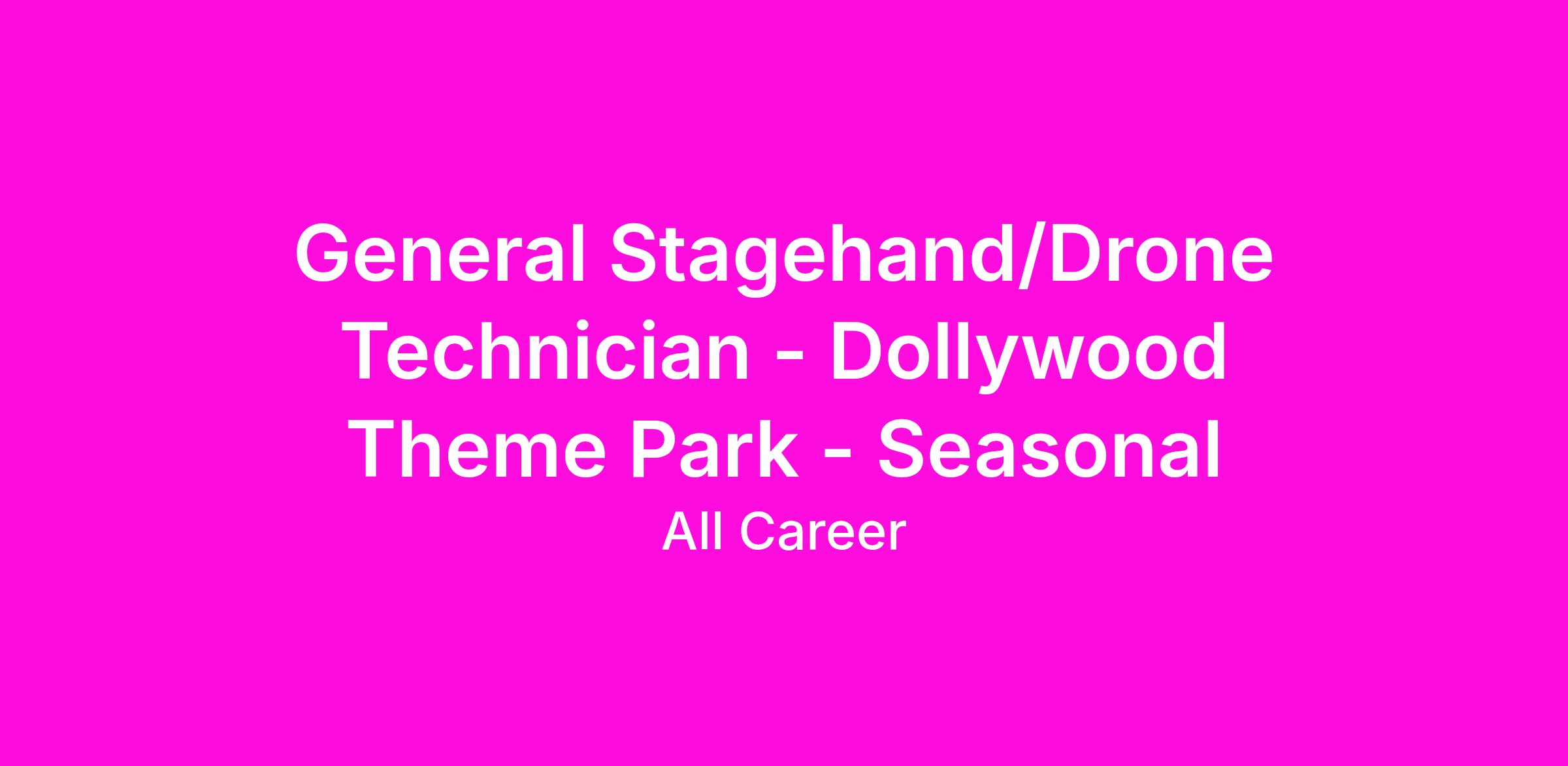 At Dollywood Parks & Resorts, we create memories worth repeating. We do this every day across all properties, all located in the Great Smoky Mountains of East Tennessee. Ask anyone who has visited Dollywood Parks & Resorts and they will tell you this place is different. It’s not a difference that you can touch or see - it’s a difference you can feel. We are seeking a General Stagehand/Drone Technician who will embody the heart and soul of our mission of creating memories worth repeating while bringing families closer together and caring deeply about our brand. This person also brings a spirit of fun, authenticity, collaboration, creativity and genuine hospitality to the lives of our guests.