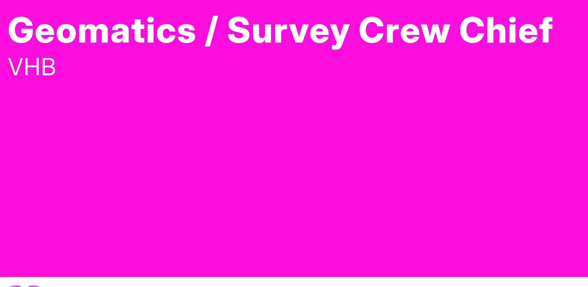 VHB’s growing New York, NY office has an immediate need for a Geomatics Crew Chief I to join our Geomatics/Survey/Reality Capture team.