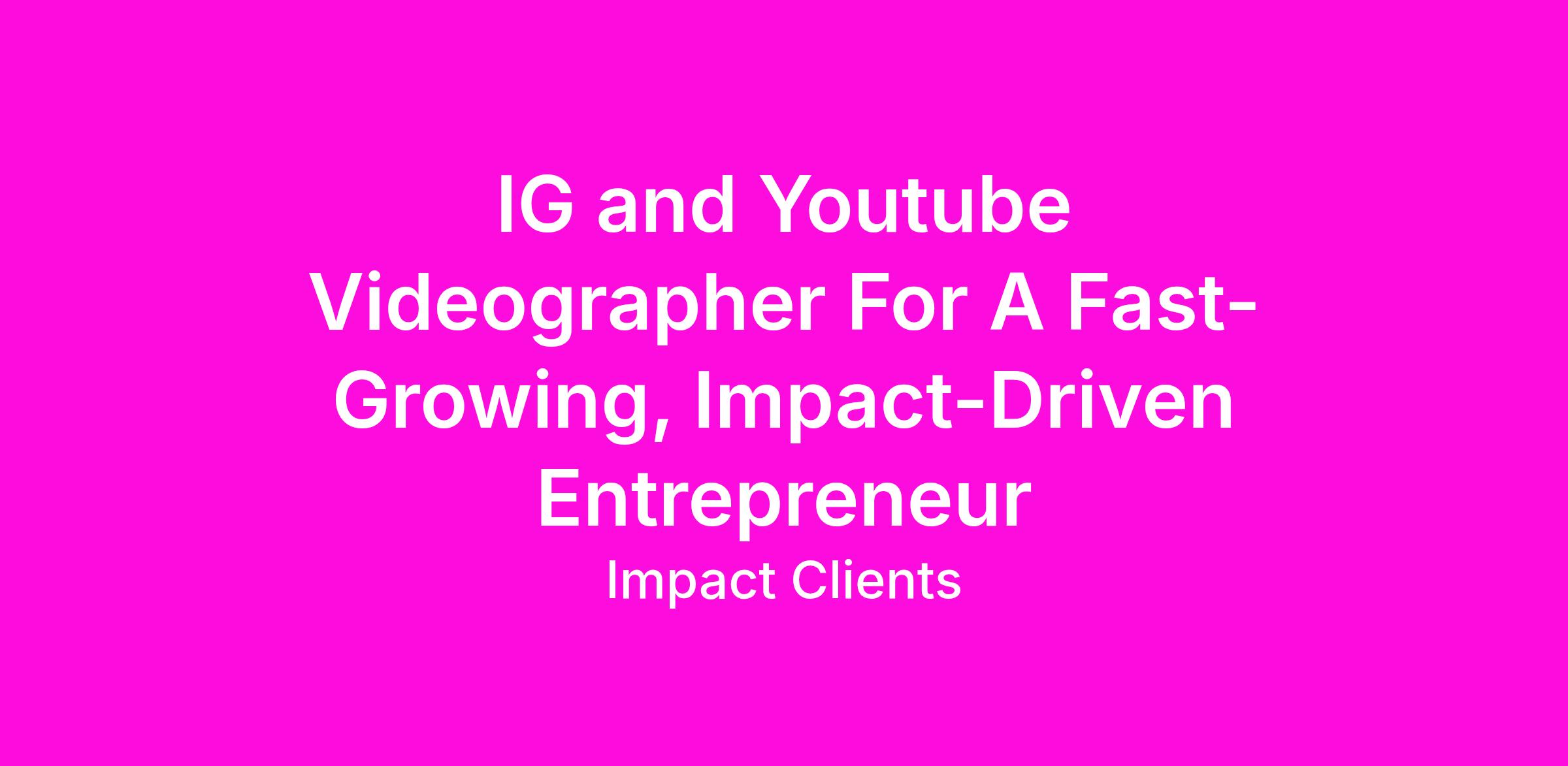 IG and Youtube Videographer For A Fast-Growing, Impact-Driven Entrepreneur
