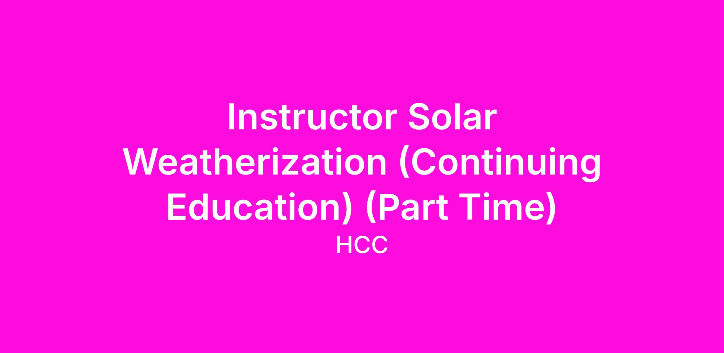 Instructor Solar Weatherization (Continuing Education) (Part Time)