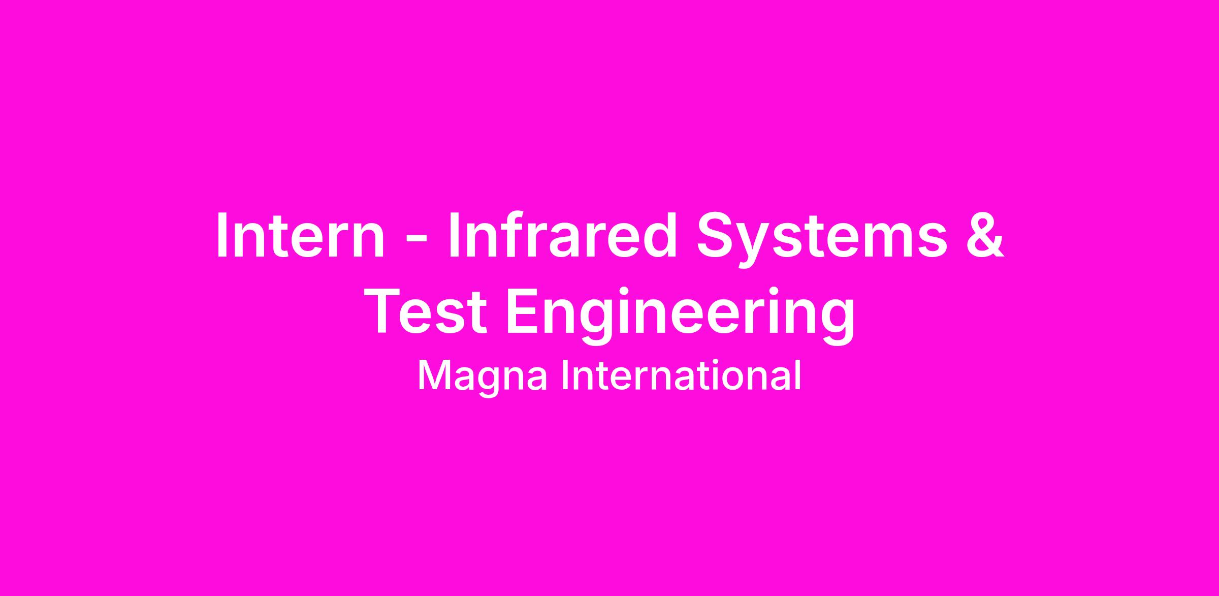 - As part of the Core Thermal Sensing team, the student intern will assist the systems and hardware engineering teams in the development and testing of next generation Thermal Sensing cameras related to creating safer automobile systems.