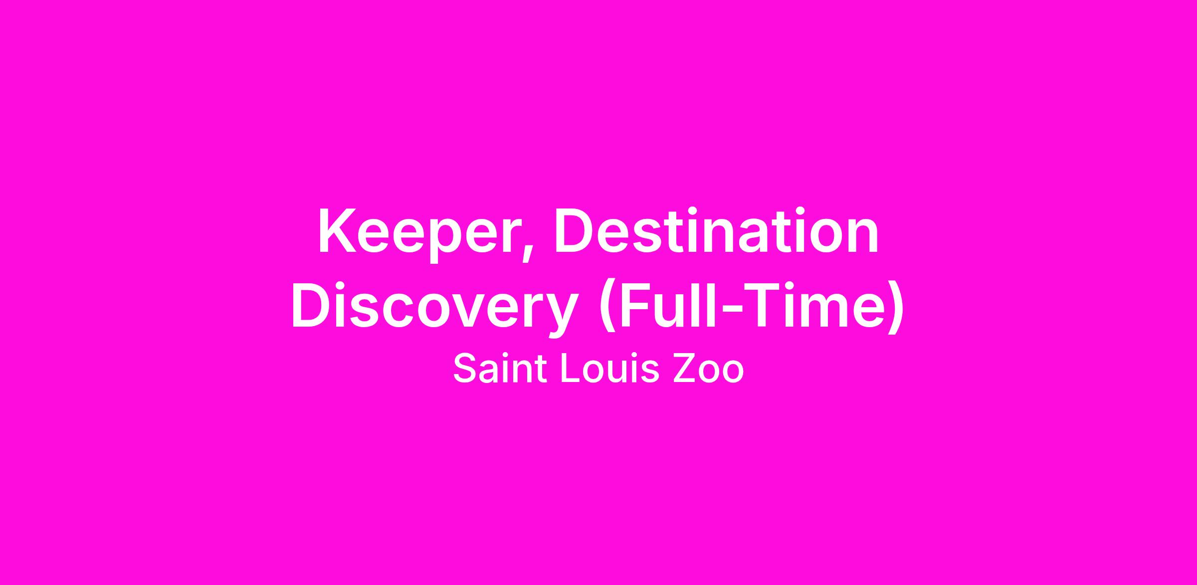The Saint Louis Zoo is looking for a skilled animal care professional to serve as a Henry A. Jubel, Destination Discovery (DD) Keeper in the care of growing population of animals. Destination Discovery staff collaborate with our Conservation Education Department to create inspiring, educational and transformational early childhood and family programming. Learn more about Destination Discovery here: https://stlzoo.org/news/destinationdiscovery