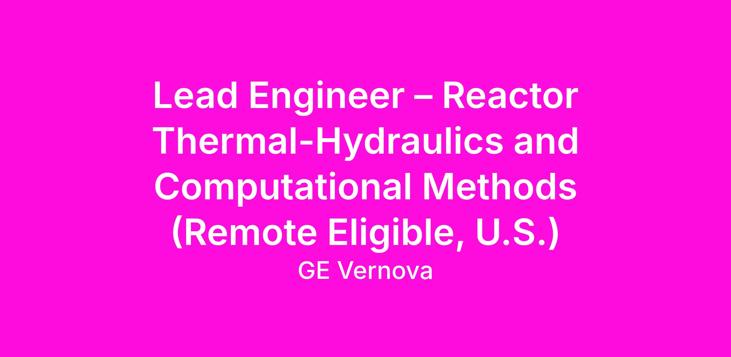 Lead Engineer – Reactor Thermal-Hydraulics and Computational Methods (Remote Eligible, U.S.)
