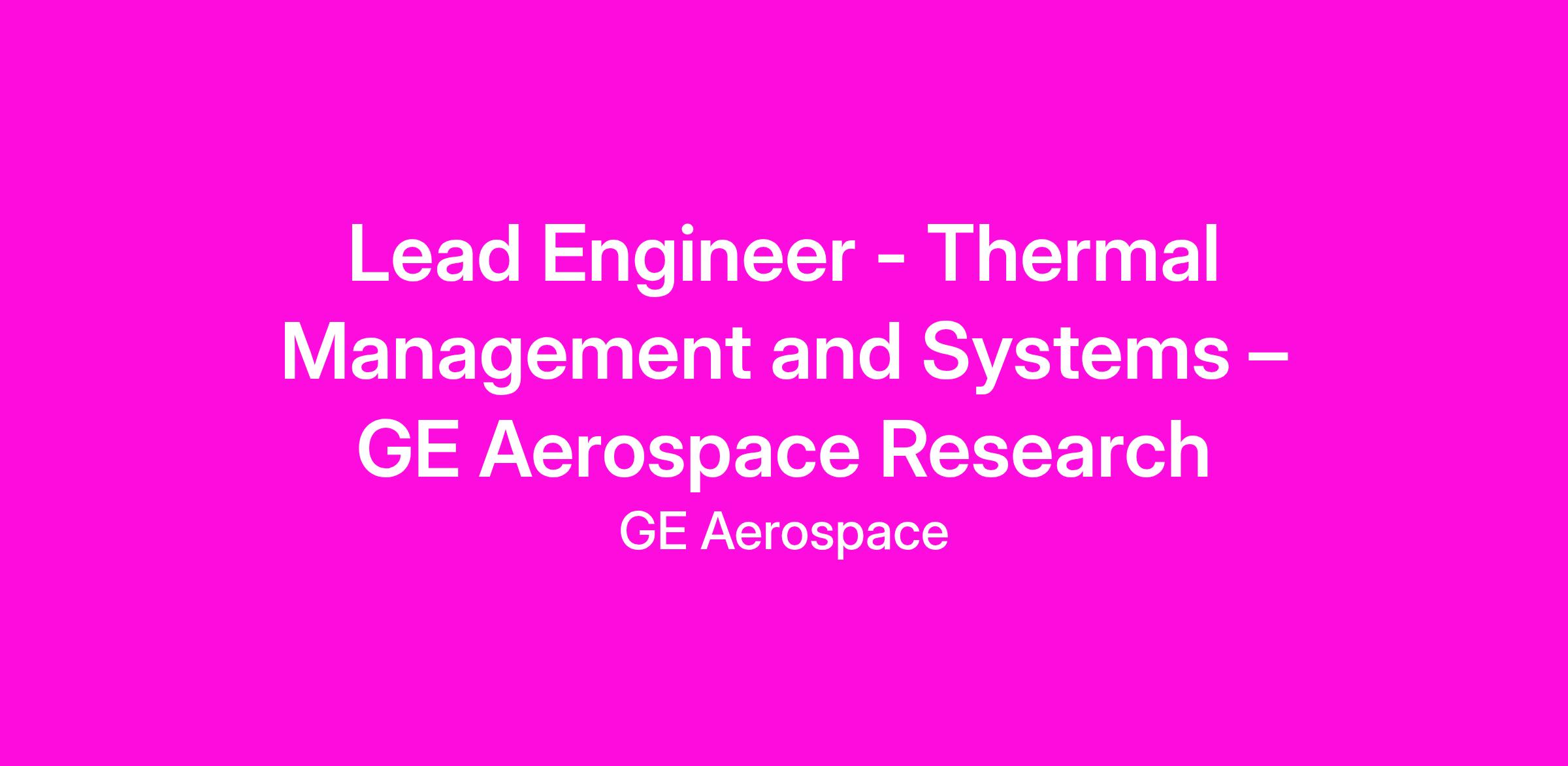 At GE Aerospace Research, we invent the future of flight, lift people up and bring them home safely. The Thermal Management and Systems Laboratory at GE Aerospace Research develops innovative solutions that move and convert energy between mechanical, fluid-thermal, and electrical domains. The Thermal Management and Systems Team is multi-disciplinary, bringing together system level thinkers, component and technology subject matter experts, and specialists in project execution and testing to demonstrate innovative power and thermal management systems tailored for our customers’ needs.